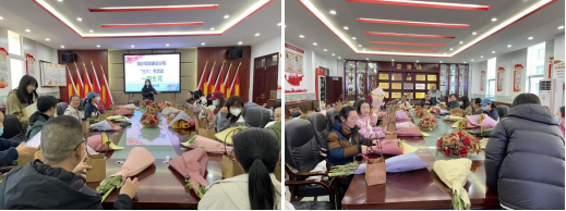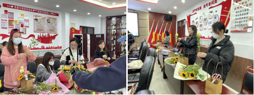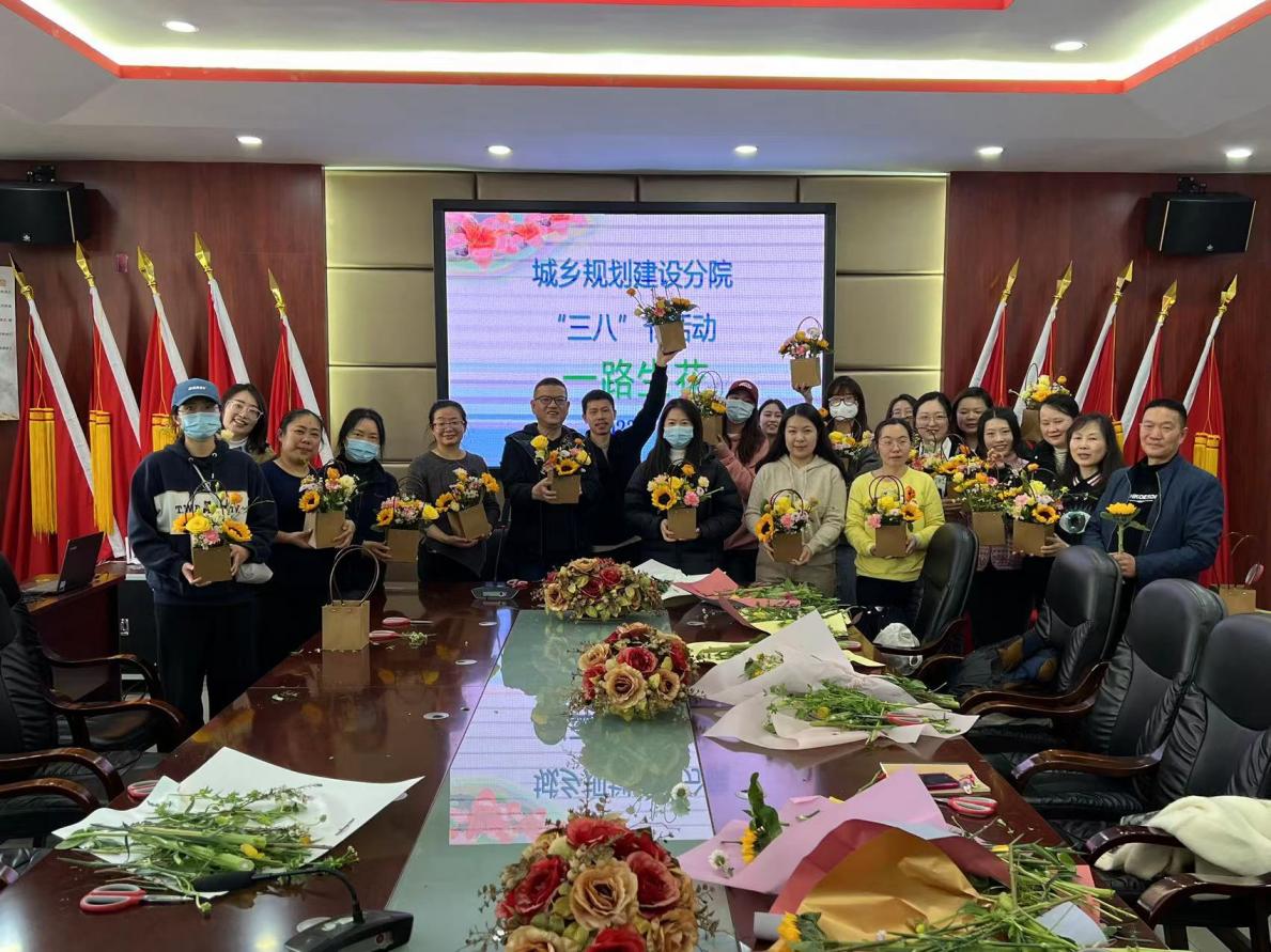 城乡规划建设分院三楼活动室花香浓郁,阵阵花香扑鼻而来。3月10日中午,为庆祝“三八”国际劳动妇女节,丰富女教师文化生活,展示女性铿锵风采,团结凝聚奋进力量,城乡规划建设分院开展以“一路生花”为主题的艺术插花活动。本次活动邀请城乡规划建设分院党总支书记熊光奎,分院院长夏明强、专职副书记秦蔚昀、分院副院长吴耕德以及分院全体女教师参加。