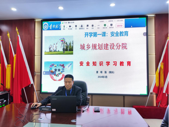 为切实提升分院学生安全意识,深化对“六灾一渗透”认识,2024年3月27日下午7:00,城乡规划建设分院党总支副书记、院长夏明强在10教305会议室开展春季开学第一课——安全主题教育活动。活动采用线上线下相结合的方式,22、23级学生代表现场参与,其余学生在晚自习教室线上同步学习。