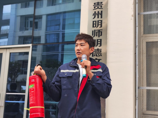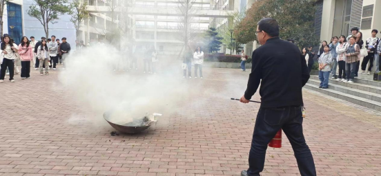 中午11:50分消防演练警报铃声响起,教学楼内各班级学生在老师的组织下有序排队从安全通道撤离,过程中提醒大家弯腰捂鼻,不嬉戏打闹,防止踩踏事故,教学楼内学生撤离完毕后,来到楼下有序集合。集合完毕后消防员向同学们讲解了遇到突发火灾时冷静应对的方法措施,现场生火并亲自示范消防灭火器的操作步骤及使用顺序,并邀请同学们上场体验使用灭火器灭火。最后,分院党总支书记熊光奎对此次消防演练做出总结,指出不足的地方并提出了今后改进的方向,强调同学们应重视消防安全,牢记消防安全知识,提高消防意识,熟练掌握消防器材的使用方法。