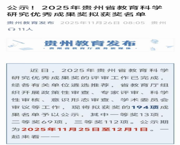 荣获2025年贵州省教育科学研究优秀成果二等奖