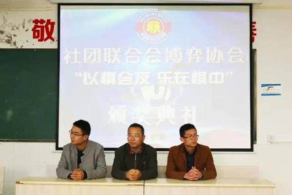 2016年12月5日,由轨道交通分院(系)社团联合会主办、棋艺协会承办的“以棋会友”棋艺大赛原貌落幕,并在3-011教室举行颁奖仪式,由轨道交通分院(系)学管办主任林乾志、团总支书记任杨、辅导员刘恩兵为获奖选手颁奖,以兹鼓励。