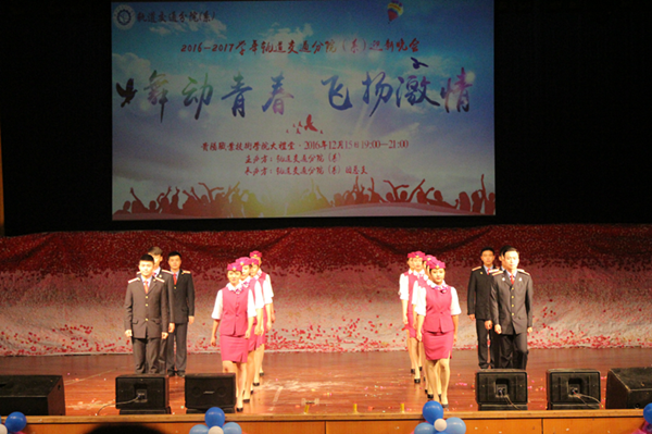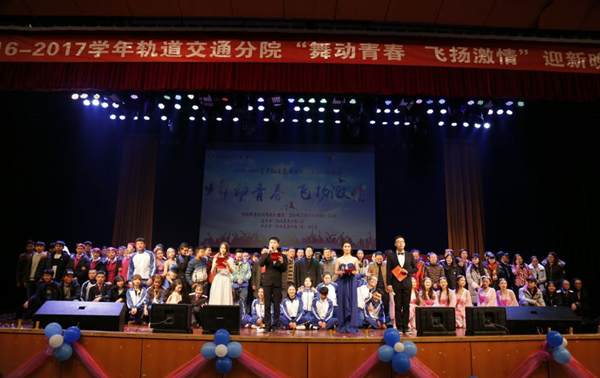 为了迎接2016级新生的到来,由贵阳职业技术学院轨道交通分院(系)主办的“舞动青春,飞扬激情”迎新晚会于2016年12月15日在学院大礼堂隆重拉开帷幕。出席此次晚会的嘉宾有贵阳职业技术学院党委委员、副院长兼轨道交通分院院长刘路明,学院学生处处长刘仕屛,学院学生处副处长、院团委书记叶曦,轨道交通分院副院长倪伟、张炜、王慧、罗闯,以及轨道系的老师、各分院团总支、学生会负责人和分院16级新同学们。