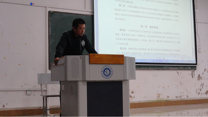 2014年11月21日下午,贵阳职业技术学院轨道交通分院在5-001教室对2013级订单班(运营6班、车辆7、8班)召开了家长会。
