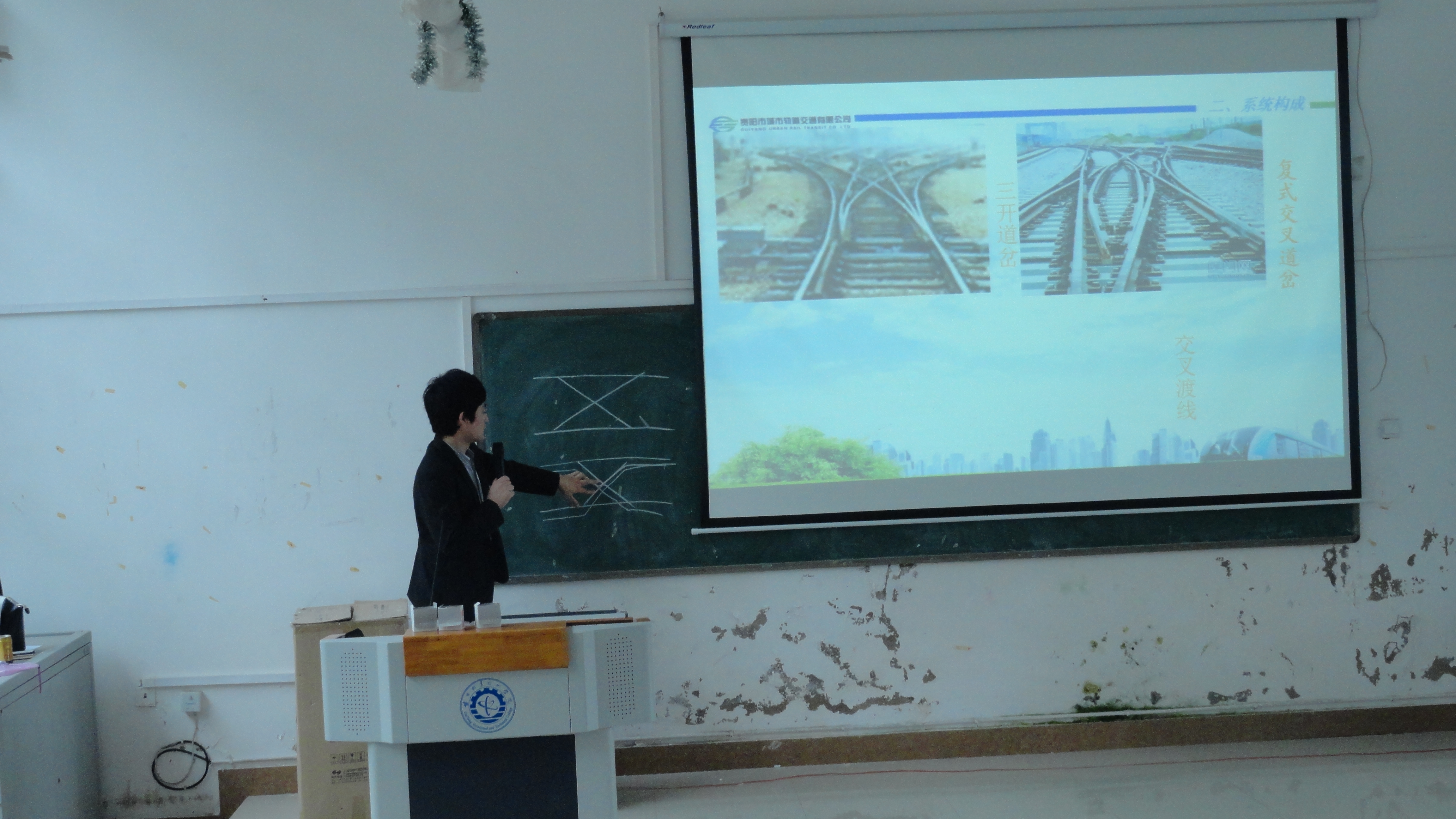 为了全面提高订单班全体同学作为一个准职业人对自己以后的工作岗位、职责、定位的全新认识,2014年6月13日,贵阳市城市轨道交通有限公司成员对轨道交通分院订单班全体同学进行了为期一天的专业培训课程,张磊老师对城市轨道交通运营组织(城市轨道交通概述、城市轨道交通系统构成、运营组织)三个大点做出了全方面的讲解。