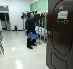 检查人员根据自己的工作任务,在各自负责的楼层对每个寝室逐一检查,并记录。