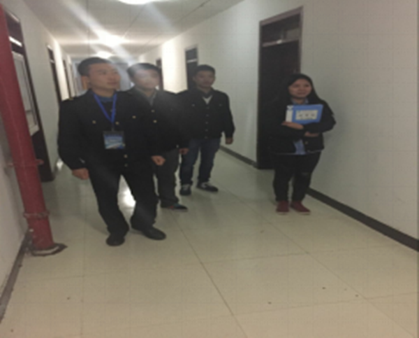检查开始,负责人认真细心交代检查人员检查的注意事项,并给他们安排工作,分配检查楼层。