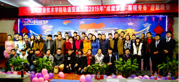 12月17日晚,轨道交通分院2015年“成就梦想,展现青春”迎新晚会在二戈寨校区礼堂隆重举行,由分院学生精心准备的歌舞、口技、相声、小品、乐器演奏等20个精彩的节目参演,为现场观众呈现了一场丰盛的视听盛宴。学院党委委员、副院长吴学玲,统战部部长彭绍琳,学生处处长刘仕萍,以及轨道交通分院领导出席了迎新晚会。校区2015级高职学生及相关辅导员(班主任)参加了迎新晚会。