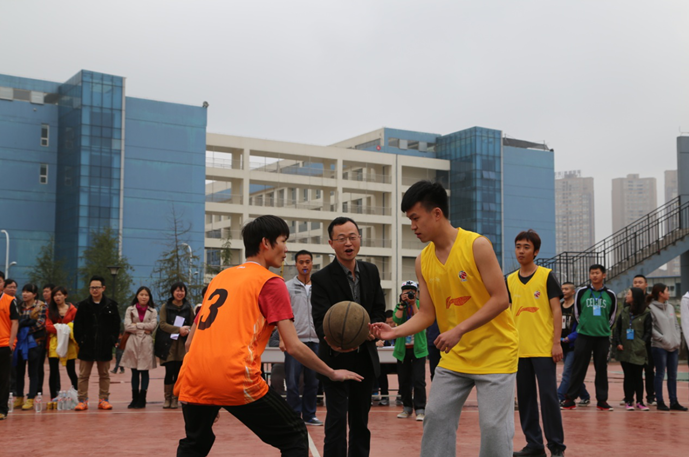 比赛第一场是12级运营6班对阵12级机车2班,最后由陈永胜老师发球,宣布轨道交通分院跃动杯篮球赛开球。