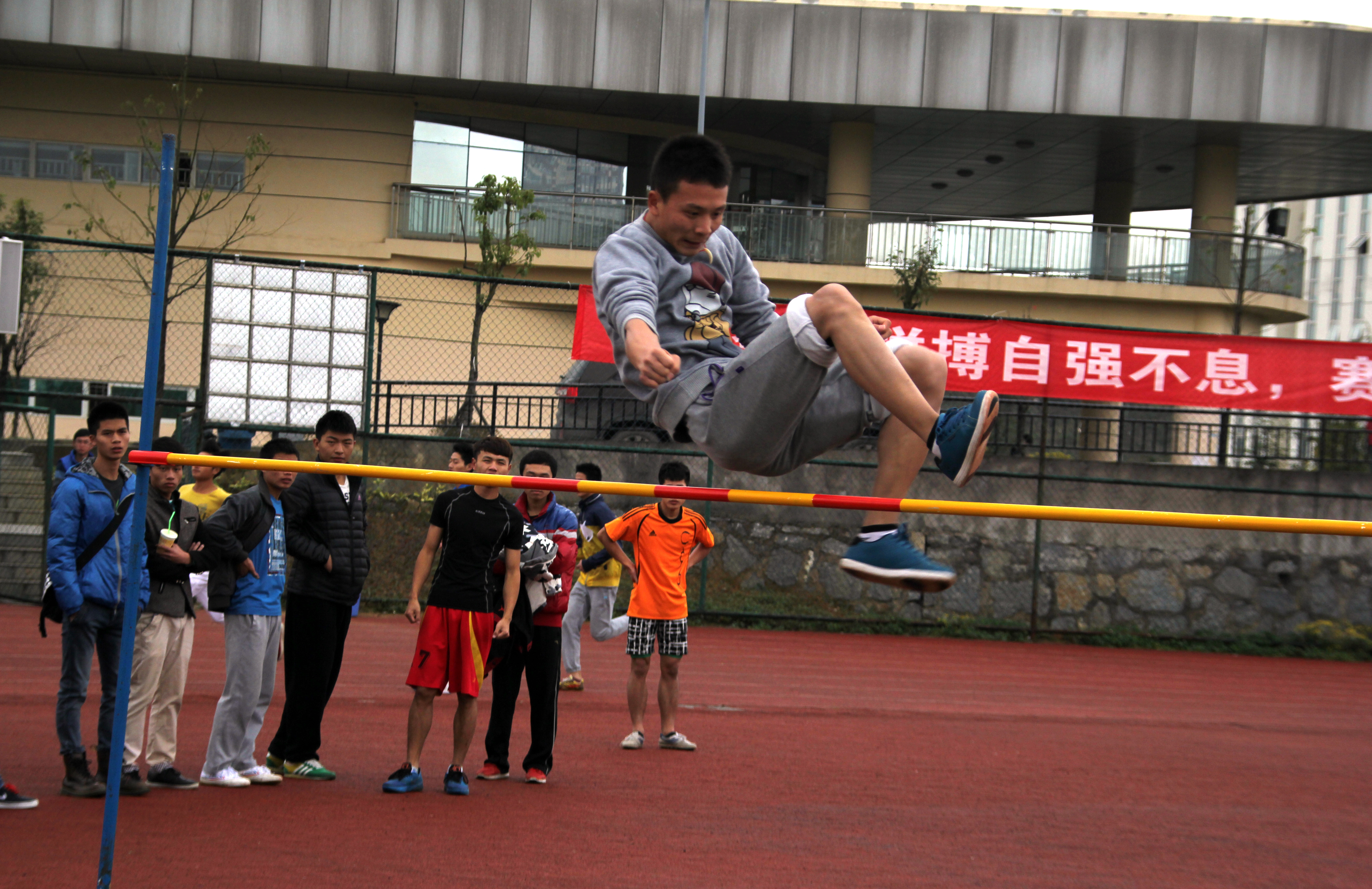 男子组跳高第一名:罗文(14工程班) 女子组跳高第一名:方江丽(13信号2班)