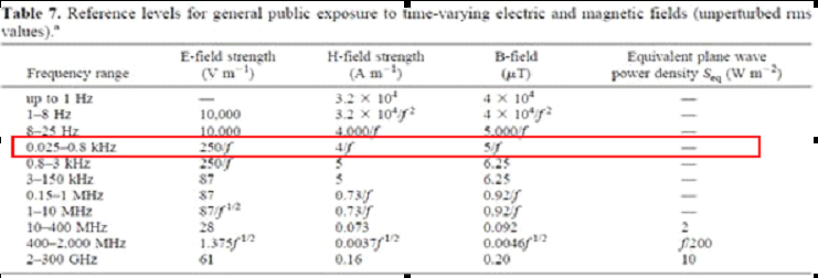 国际非电离辐射防护委员会(该领域全球最权威组织,我国环保法律制定参考该组织标准),高铁产生的50Hz左右的“极低频电磁辐射”,电场辐射的安全标准为5kV/m,以下,磁场辐射为100μT(μT即微特斯拉,磁感应强度的单位)以下。