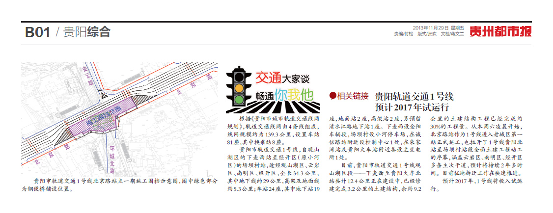 目前,贵阳市轨道交通1号线观山湖区段——下麦西至贵阳火车北站共计12.4公里正在建设中,已经修建完成3.2公里的土建结构,余约9.2公里的土建结构工程已经完成约30%的工程量。从本周六凌晨开始,北京路站作为1号线进入老城区第一站正式施工,也拉开了1号线贵阳北站至场坝村站段全面土建工程动工的序幕,涵盖云岩区、南明区、经开区多条主次干道,预计将持续2年多时间。目前征地拆迁工作在快速推进。