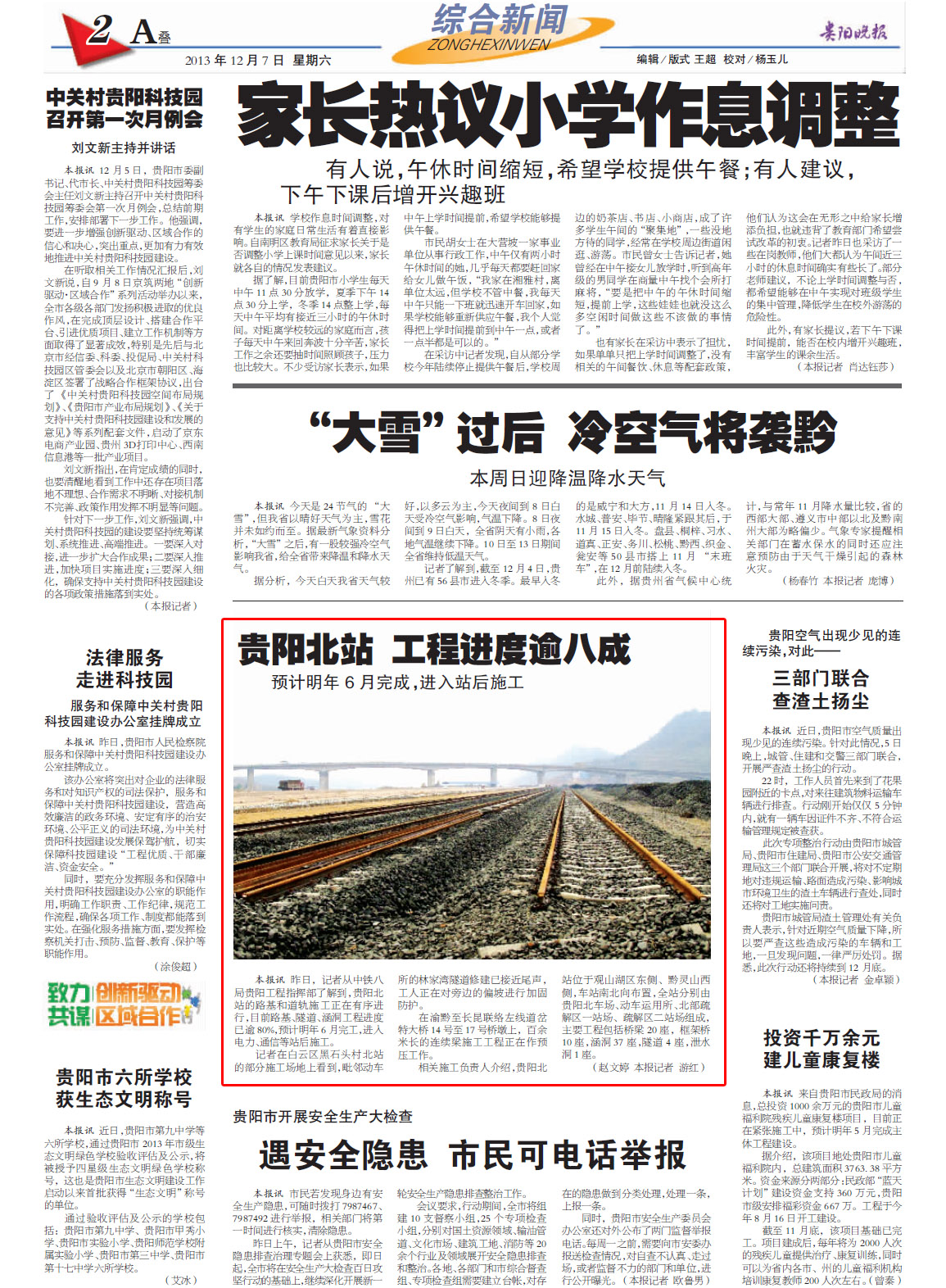 昨日,记者从中铁八局贵阳工程指挥部了解到,贵阳北站的路基和道轨施工正在有序进行,目前路基、隧道、涵洞工程进度已逾80%,预计明年6月完工,进入电力、通信等站后施工。