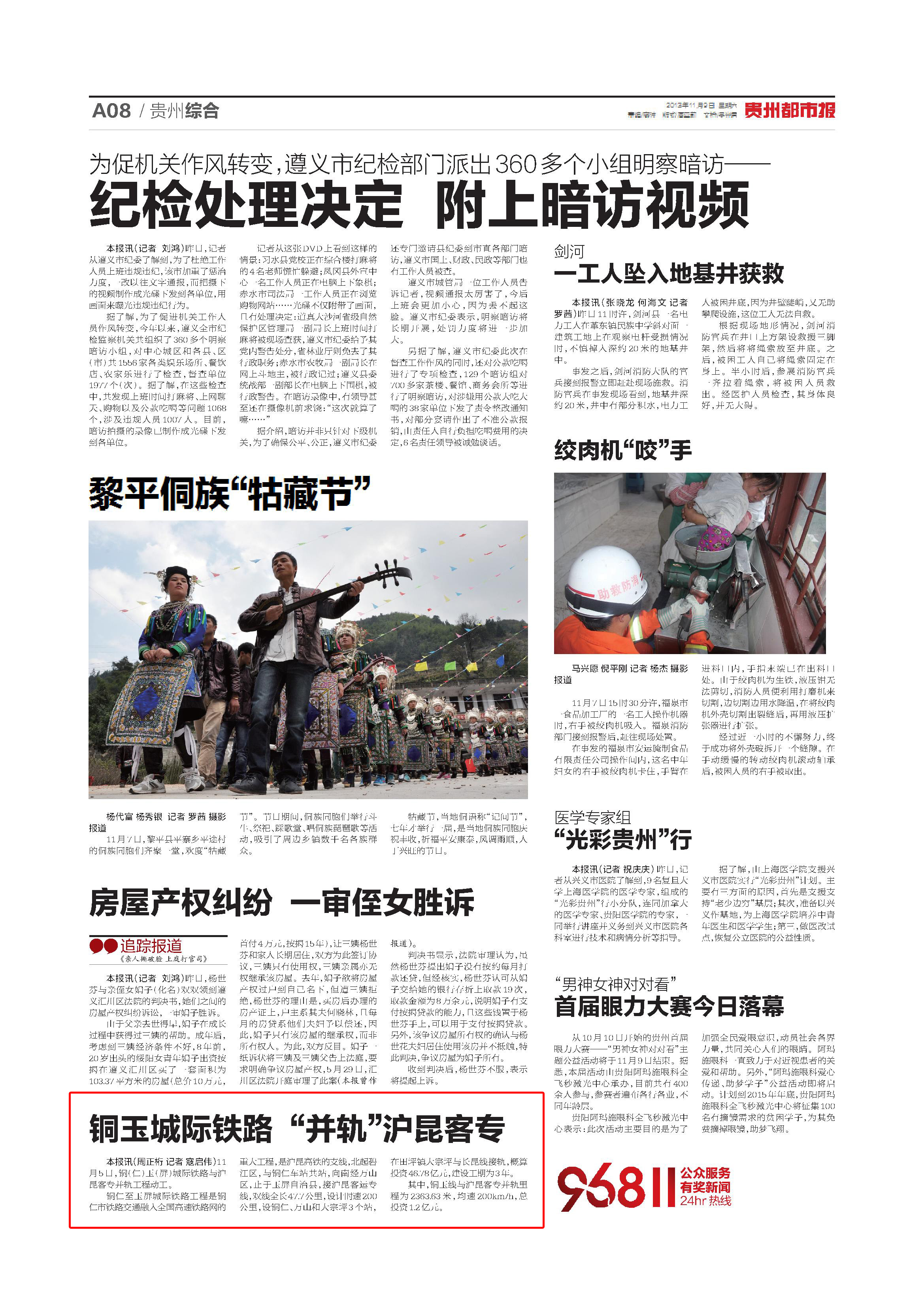 11月5日,铜(仁)玉(屏)城际铁路与沪昆客专并轨工程动工。