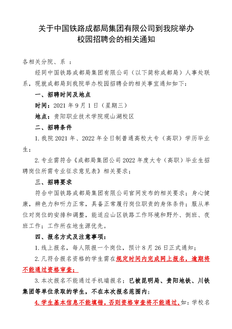 关于中国铁路成都局集团有限公司到我院举办 校园招聘会的相关通知