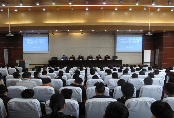 招聘宣讲会上杨科长首先介绍了昆明铁路局的基本情况:昆明铁路局是中国铁路总公司管理的大型铁路运输企业的18个铁路局(集团公司)之一,成立于1997年4月1日,总营业里程达1925公里,辖区包括云南、四川(攀枝花以南)、贵州(部分)三个省份,下辖18个站段,有3.5万职工,2016年底将开通长昆高铁西段(贵阳到昆明),十三五期间还有多条铁路将相继通车或开工建设,多条铁路出境,对轨道专业技能人才需求是巨大的。此次招聘主要面向轨道交通分院2013级铁路主专业学生。介绍完后,昆明铁路局杨科长等与学生进行了互动交流,回答了同学们关心的问题。