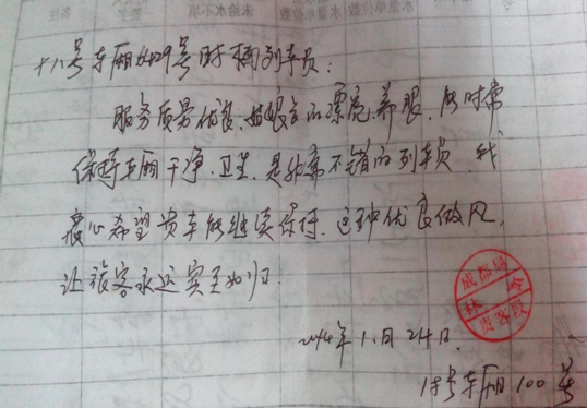 T88次旅客交给车长的对实习学生时楠的表扬信