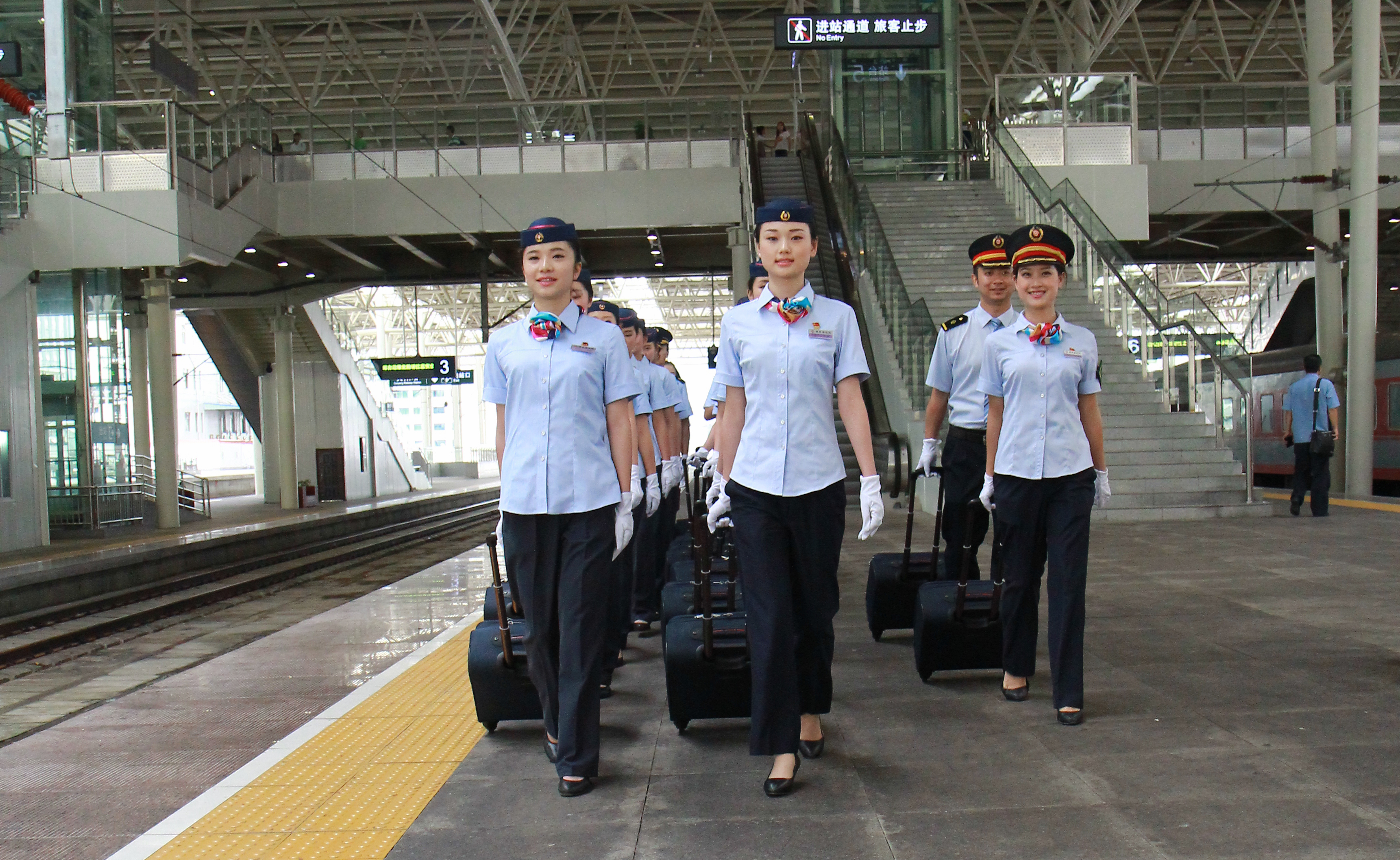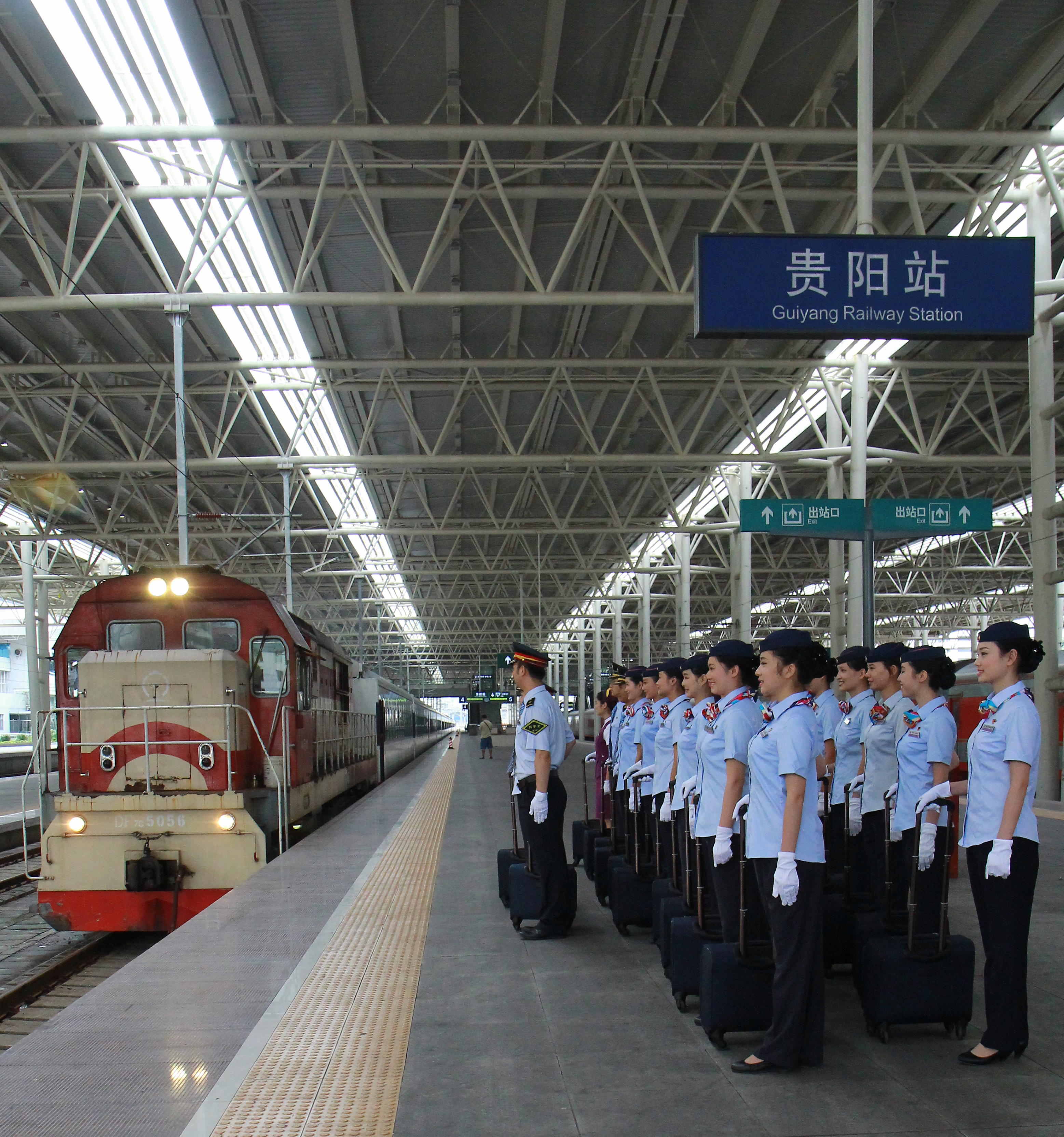 T150/149次列车无论从硬件还是软件上目前是贵州标准最高的旅客列车,轨道交通分院2012级运营管理专业共有83位同学在本次列车上担当乘务任务。同学们放弃假期休息,克服准备时间短、任务重、压力大等重重困难,从专业知识、列车整备、车队标准、仪容仪表、日常礼仪、服务用语等方面加强学习和培训。以饱满的精神面貌、从高端的礼仪、微笑的服务做起,为此品牌列车的开行贡献了自己的一份力量。
