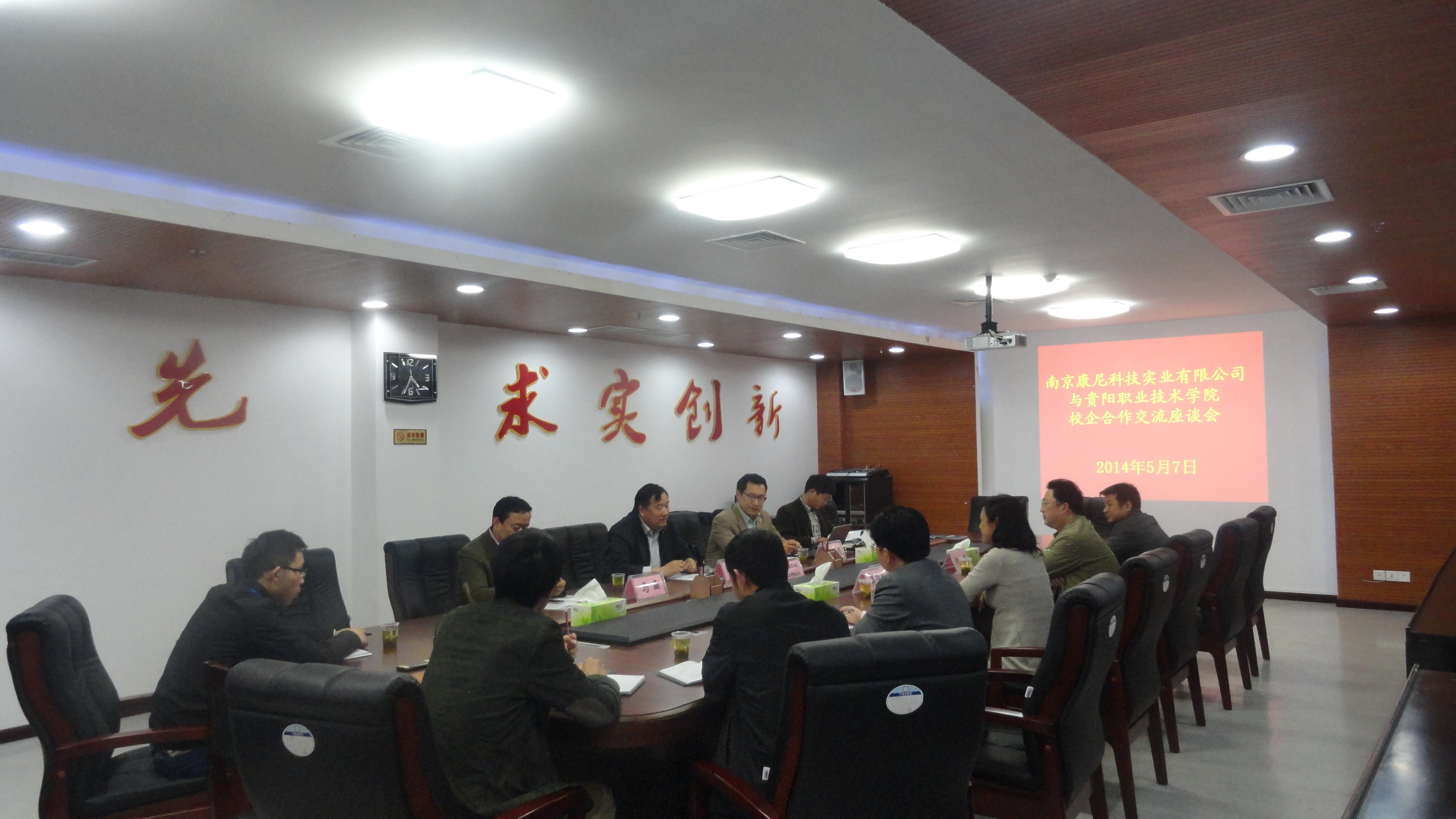 57下午,南京康尼实业有限公司徐官南董事长一行四人莅临我院,学院副院长吴学玲接见并陪同参观了我院轨道交通实训基地后,在行政楼406会议室举行了座谈会,轨道交通分院领导及系部教师出席了座谈会。双方就城市轨道交通实训基地的设计、规划等方面进行了广泛深入的交流。