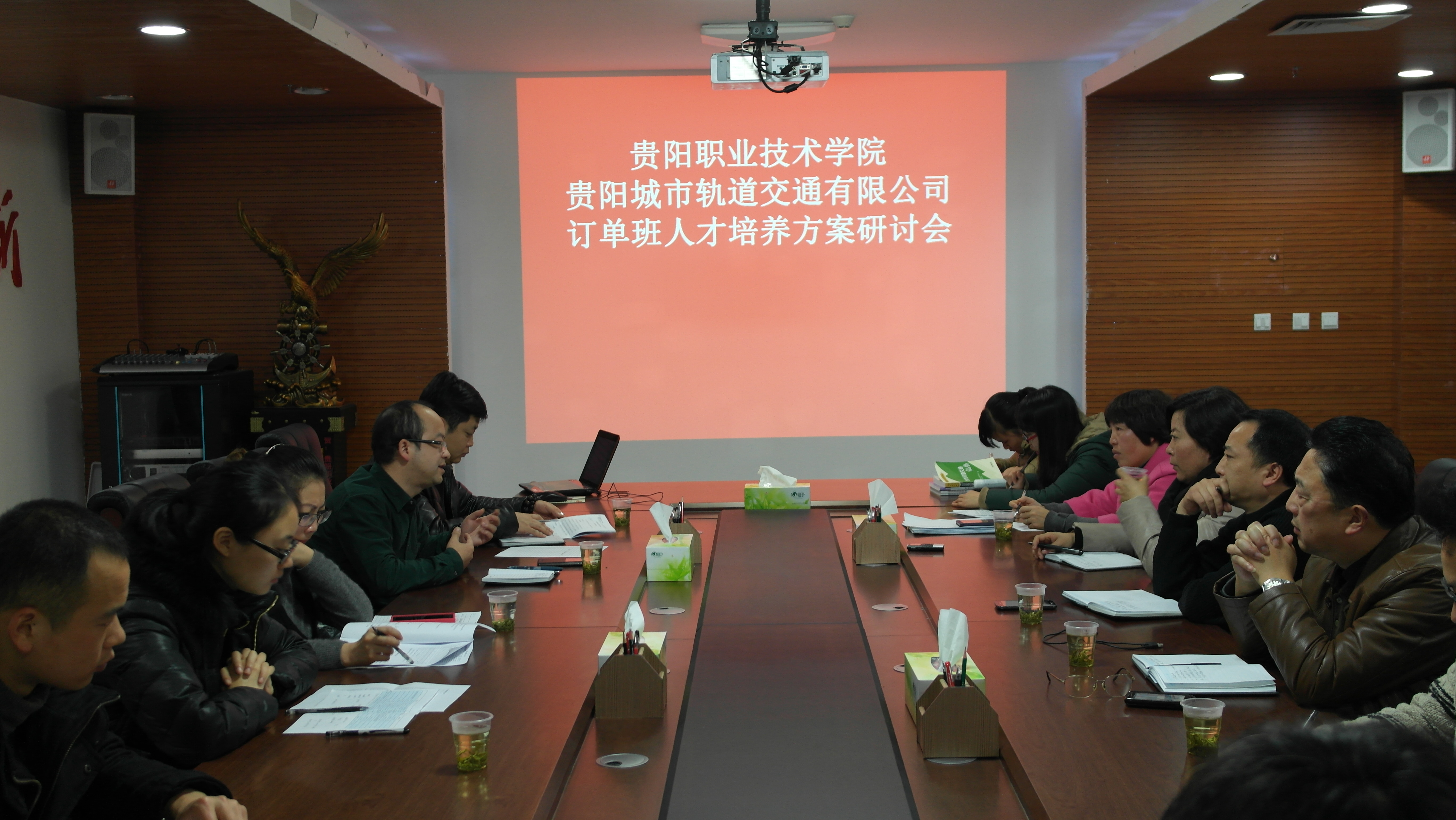 2015年1月5日,贵阳职业技术学院与贵阳市城市轨道交通有限公司在学院行政楼506召开2013级贵阳轨道交通运营、乘务、检修订单班人才培养方案研讨会。贵阳市城市轨道交通有限公司人力资源部唐部长、机电设备(运营筹备)部段部长及有关运营、车辆驾驶与检修方面的专工共计9人参加了本次研讨会。我院轨道交通分院倪伟副院长、罗闯副院长及机车教研室和运输教研室全体教师参与研讨。