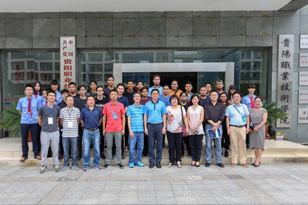 2016年6月14日,贵阳职业技术学院为远道而来的新加坡工艺教育局西区学院捷运专业师生举行了隆重的欢迎仪式。学院党委委员、副院长刘路明代表学院致欢迎词,欢迎新加坡工艺教育局西区学院师生来我院交流学习,希望我们能深入合作、互学互助、加强交流、共同发展。双方播放了各自学院宣传片,加深彼此的了解。轨道交通分院副院长倪伟向来宾介绍了轨道交通分院的情况。两校于2014年开始了交流合作,今年是新加坡工艺教育局西区学院第二次到我院交流学习。欢迎仪式结束后,双方合影留念,并参观了学院职业技术馆、图书馆、道德讲堂、活动中心、轨道交通实训基地等场所。学院对外合作处、轨道交通分院、后勤处、保卫处、学生工作处、医务所等部门参加欢迎仪式。