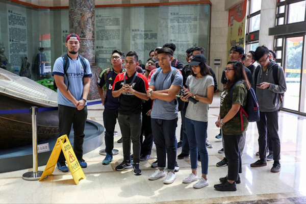 新加坡交流生仔细聆听志愿者的讲解