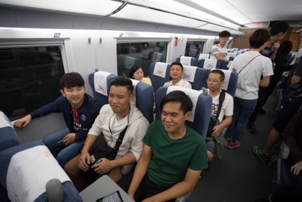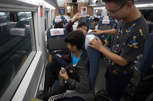 在前往高铁站的途中新加坡的师生们都兴高采烈,个个精神十足,对素未蒙面的高铁表现出好奇与期待,都想要先睹为快。上车后,新加坡的师生们不仅被里面的环境深深吸引,还惊叹于高铁的速度和便捷,140多公里的行程仅用了短短半个小时,运行最高时速达到了298km/h。在短短几十分钟的高铁乘坐中,让他们对高铁的方便、舒适、快捷有了更深层次的了解。