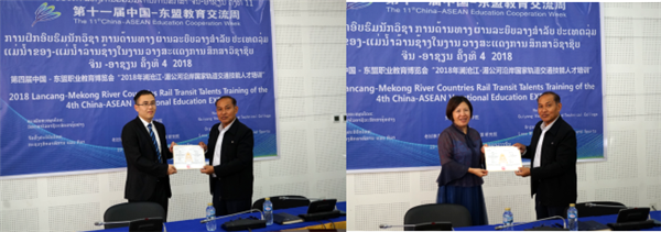 开幕式的最后,由老挝教育与体育部职教司副司长宋篱•未翁宣布,此次培训项目正式开始。贵阳职业技术学院轨道交通分院罗闯副院长代表中方向老方赠送礼物。