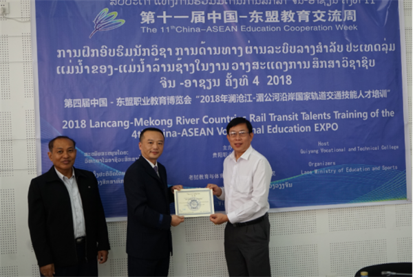 在完成了三天的专业培训后,本次“2018年澜沧江-湄公河沿岸国家轨道交通技能人才培训”项目也宣告着即将结束,闭幕式由老挝教育与体育部职业教育发展研究院副院长蓬贤·康莫迪主持,老挝教育与体育部职业教育发展研究院院长普维恩•普米莱、贵阳职业技术学院轨道交通分院副院长罗闯分别就中老双方如何展开富有成效的合作做了讲话,并拟将派遣12名专业教师来到贵阳职业技术学院进行专业培训及深度合作。