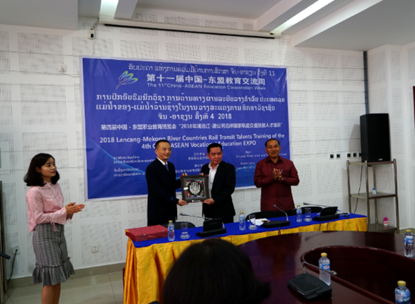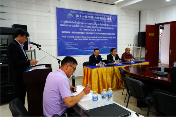 2018年10月23-25日,由老挝教育与体育部职业教育发展研究院、贵阳职业技术学院共同主办的“2018年澜沧江-湄公河沿岸国家轨道交通技能人才培训”项目在老挝的首都万象市举办。我院由轨道交通分院副院长罗闯带队,轨道交通分院专业负责人郁盛梅、魏玉梅、龚俊维、陈德朕、对外合作处教师韩欣芝、郭艺榕共7人组成培训团队赴老挝万象市进行了为期三天的培训。