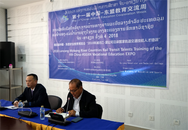 开幕式由老挝教育与体育部职业教育发展研究院副院长蓬贤·康莫迪主持,老挝教育与体育部职教司副司长宋篱·未翁、老挝教育与体育部职业教育发展研究院院长普维恩•普米莱、贵阳职业技术学院轨道交通分院副院长罗闯分别就此次培训项目的由来、中方开展“澜沧江—湄公河”流域沿岸国家合作的战略意义、老方对于未来2022年开通的中老铁路对于人才的需求、以及按照中老合作协议即将建立中老友谊铁路学院的人才培养方面的探索作了讲话。