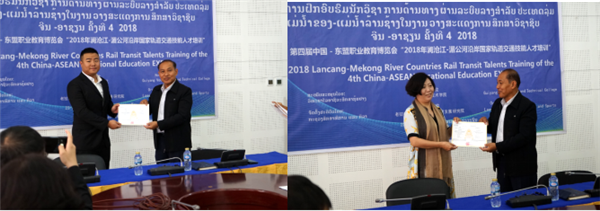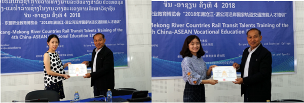 会后,老挝教育与体育部职业教育发展研究院院长普维恩•普米莱代表老方向中方的专业教学团队颁发了荣誉证书。