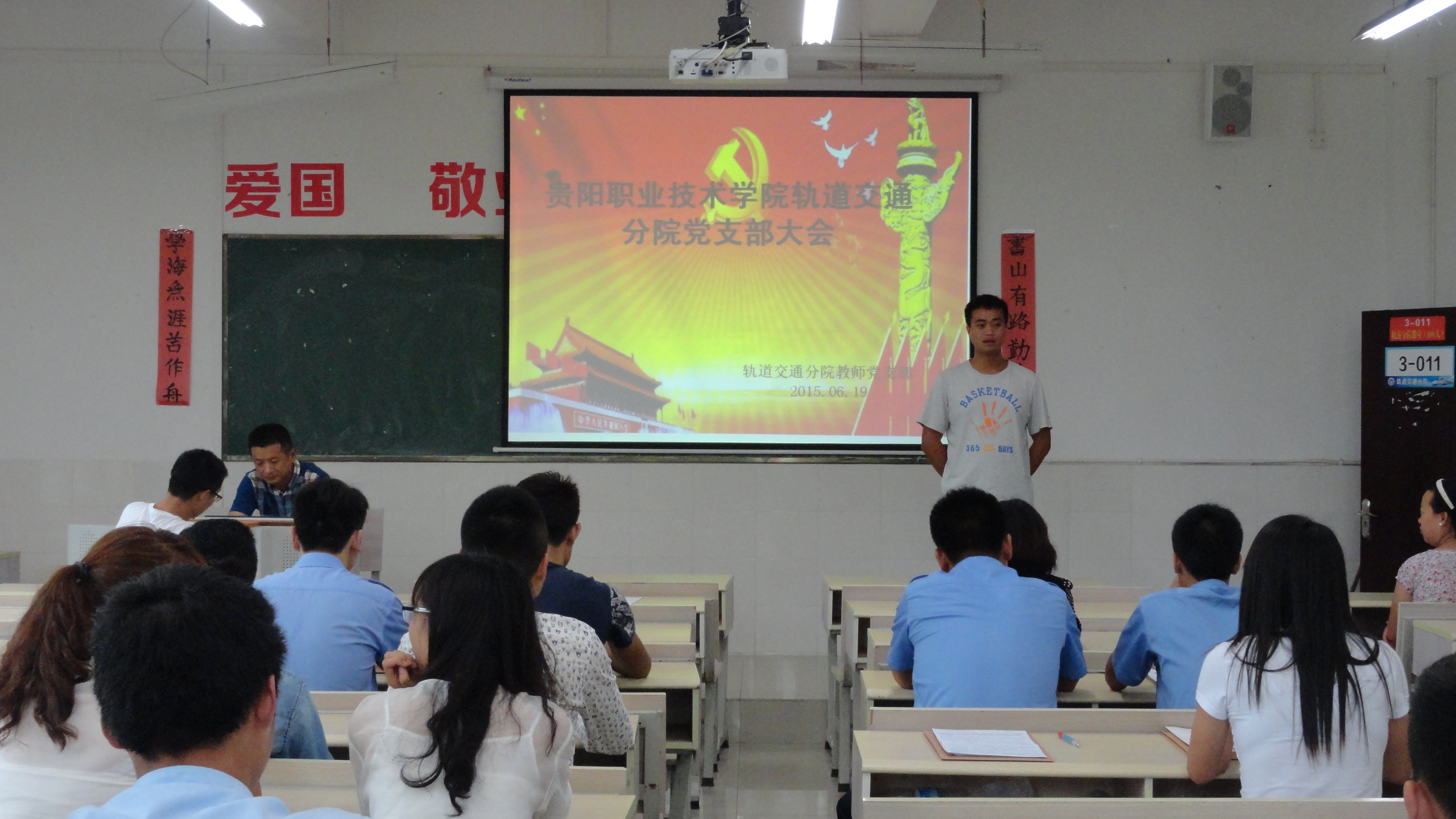 2015年6月19日下午,轨道交通分院召开了支部全体党员参加的轨道交通分院教师党支部党员大会。教师党支部书记张炜主持会议。大会主要讨论了关于吸收彭健等十九位同志为中共预备党员的问题。按照会议议程,拟发展为中共预备党员的十九位同志对成为发展对象以来的思想、工作、学习和生活情况作了汇报;入党介绍人介绍了十九位同志成为发展对象以来的情况;参会其他党员同志对十九位同志作情况介绍。之后,按照预备党员发展的程序,有表决权党员同志无记名投票表决,全票通过,大会同意这十九位同志转为中共预备党员。