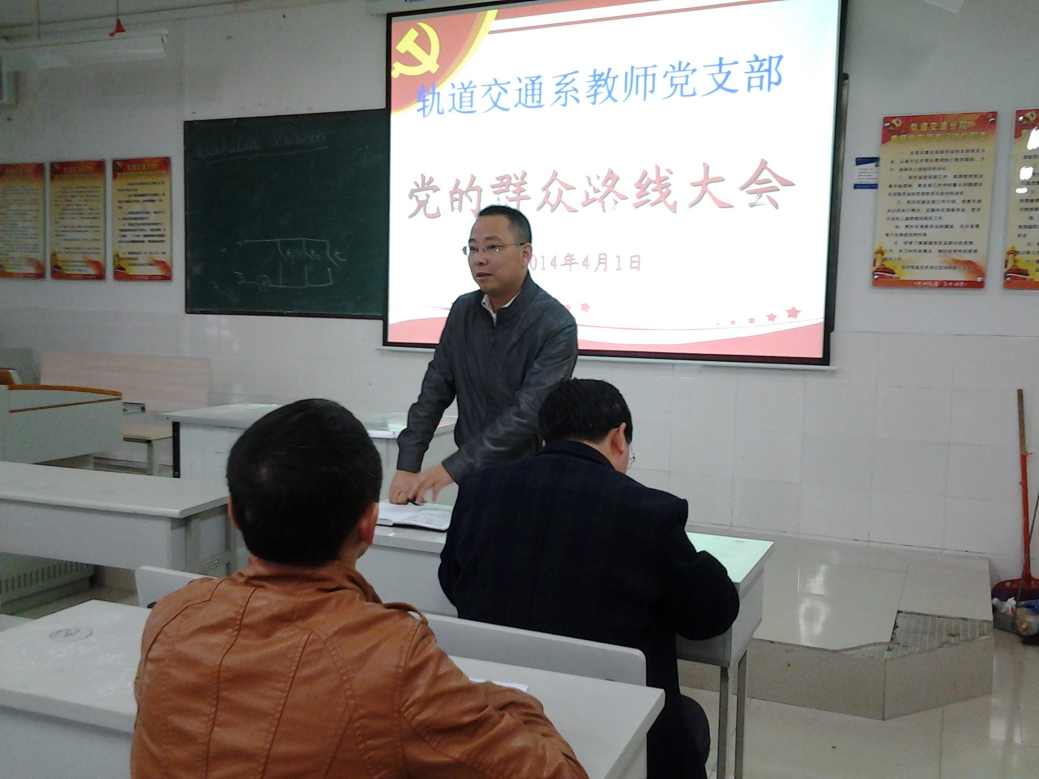 轨道交通分院教师党支部书记、教学办公室贾武通主任强调了要把群众路线落实到教学的实际工作中,请分院每位教师在教学中认真履行职责、认真备课,上好每节课,认真执行上、下课时间,严格课堂管理,认真做好学生考勤记录,做到“对学生负责,让家长放心”;要求老师们在教学过程中,做到教书育人,关心学生的成长,对积极要求进步的同学主动培养,考察,做到“早选苗、早培养、早发展。”