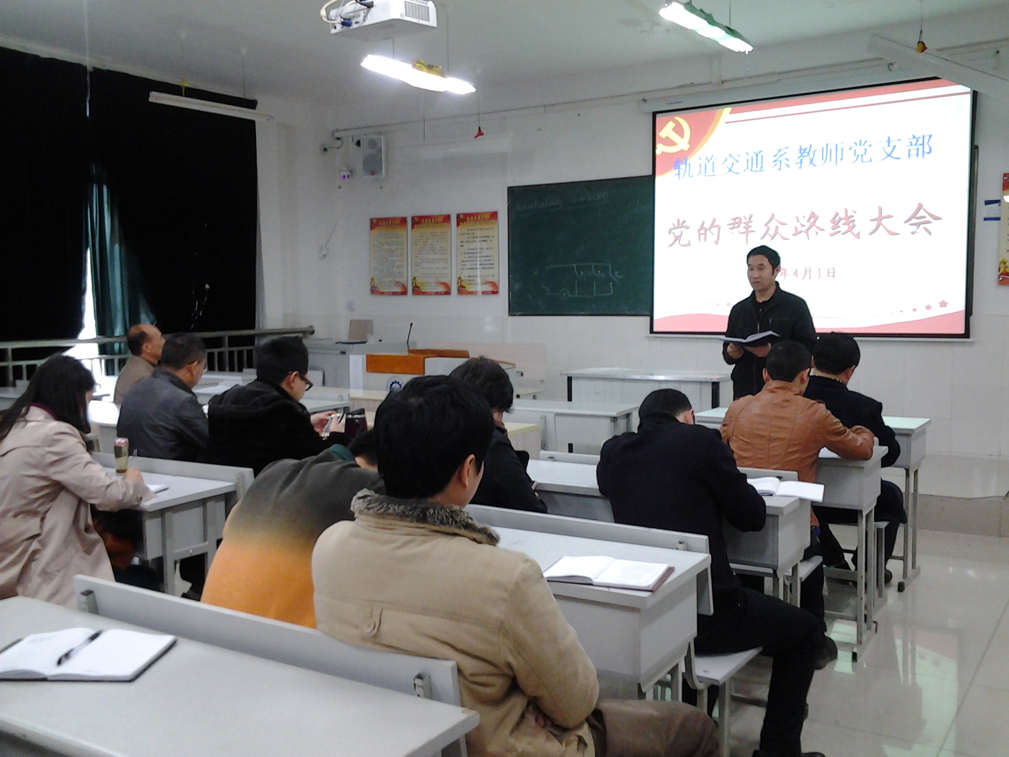 4月1日,作为教学工作一线的党支部,轨道交通分院结合“一切为了学生、为了学生的一切”的工作宗旨召开了轨道交通分院教师党支部群众路线大会。此次大会由轨道交通分院王治强副院长主持,分院的全体教职工以及班主任、辅导员、外聘教师参加了会议。