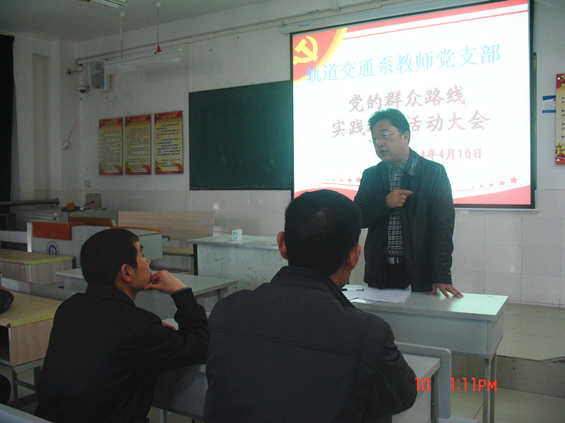 4月10日,轨道交通分院召开了教师党支部的群众路线实践教育活动大会。按照《贵阳职业技术学院开展党的群众路线教育实践活动实施方案》的安排部署,轨道交通分院教师党支部为进一步明确目标任务,突出工作重点,细化工作措施,有力有序有效推进教育实践活动的开展,制定了轨道交通分院的《党的群众路线教育实践活动工作任务推进计划》。会上轨道交通分院教师党支部书记贾武通向各位教师通报了这一计划,对下一步的学习实践进行了部署。轨道交通分院副院长倪伟强调党的群众路线在分院工作实际中的有重点、有实效地运用,针对教室卫生、学生养成教育等问题提出对策;提出要重点打造城市轨道交通运营、城市轨道车辆两个专业的专业建设以及2013级订单班的课程改革等问题。