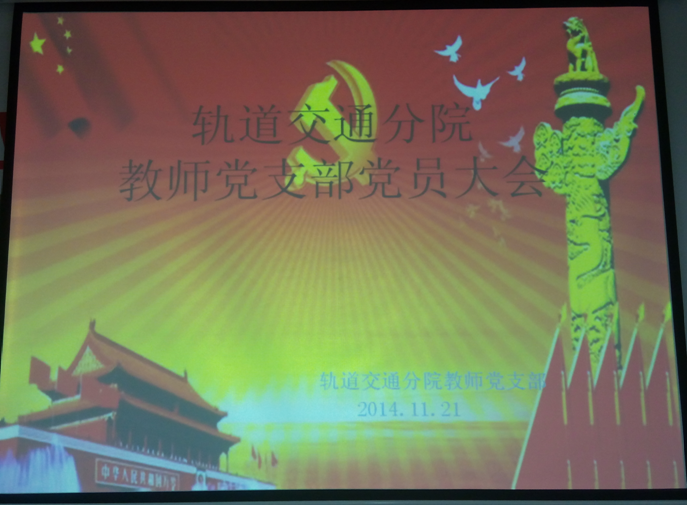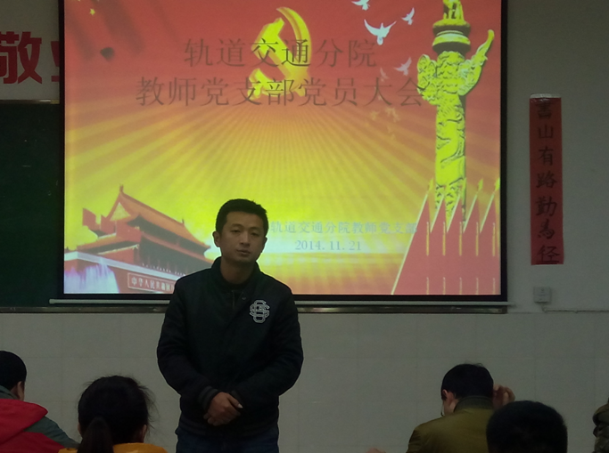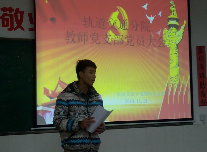 轨道交通分院教师党支部于2014年11月21日下午,在3教011教室召开教师党员大会。此次会议由轨道交通分院团委书记陈永胜老师主持,会议讨论杨婷、杨彦等11名第十期入党积极分子转为预备党员的申请。