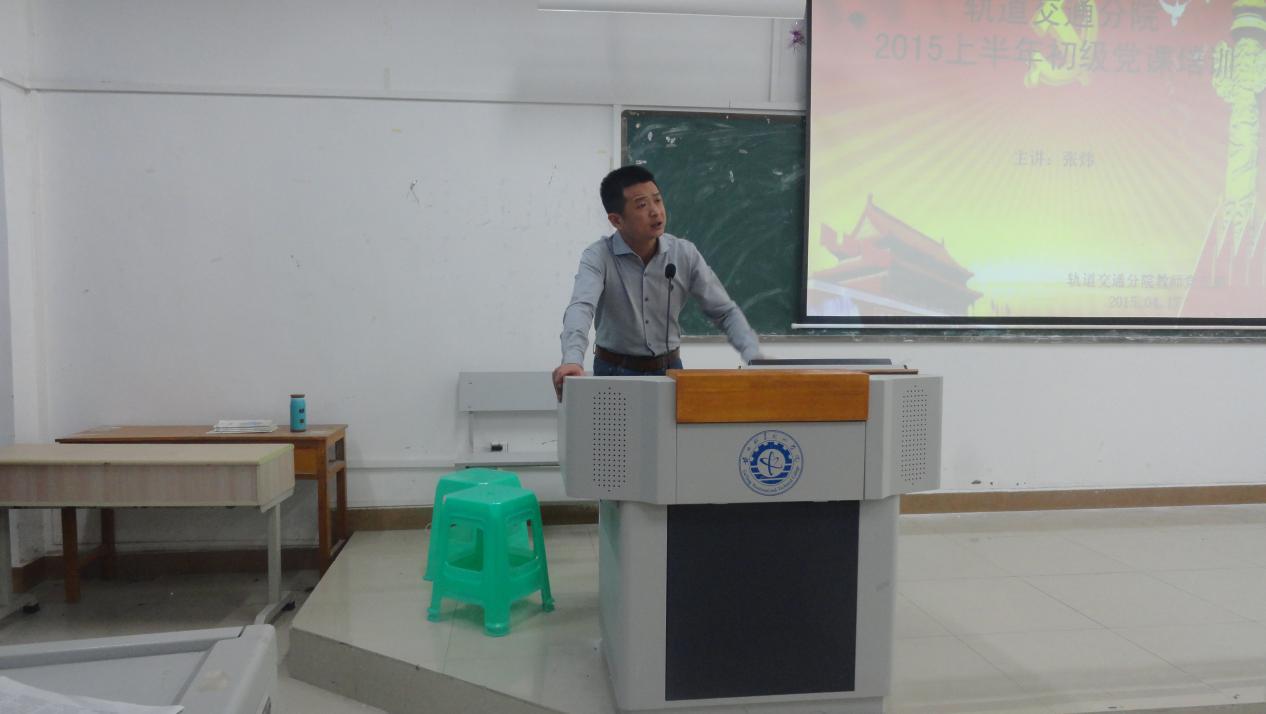 2015年4月17日下午,轨道交通分院在6-001教室开展了2014-2015学年第二学期第一次初级党课培训,培训老师由分院张炜副院长担任。