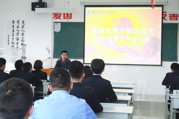 轨道交通分院于2016年4月8日下午在3教311教室召开了团总支干部大会,会议重点对学生干部部署新学期学生工作和提出新要求。团总支书记任杨、13级副书记彭建、林子扬,以及全体学生干部参加了会议。大会由黄竞辉副书记主持,该会议共分三个阶段,既任杨书记对新成员的期望、13级副书记对上学期工作总结和学生后备干部讲话并宣布团总支学生干部名单。团总支学生干部分别是:团总支副书记(黄竞辉、赵兰洋、张羽欣),组织部部长(李发伟、张博),文体部部长(杨月贵、叶浩、王海龙),宣传部部长(罗鑫、史开胜)。