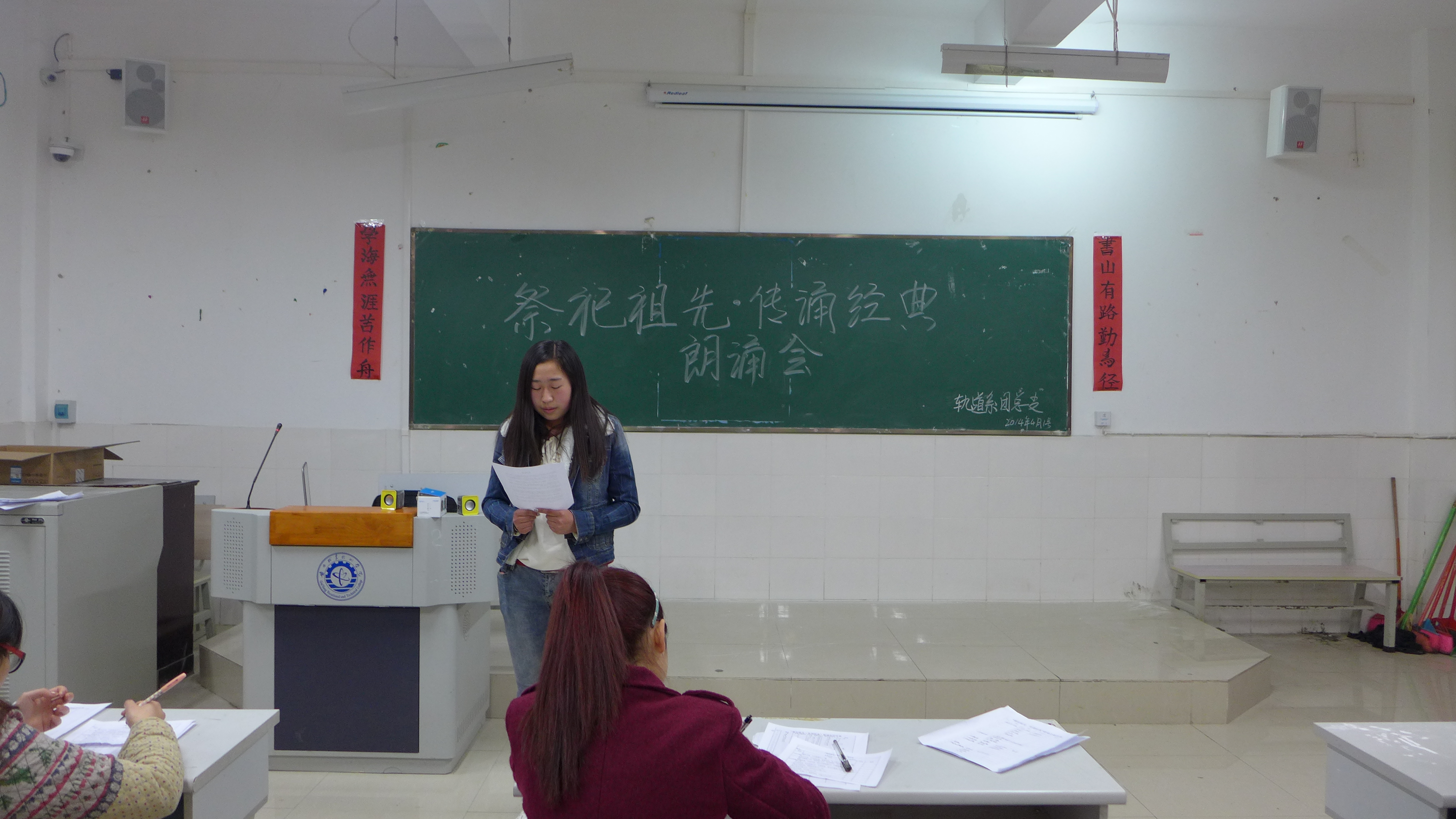 朗诵时,参与的选手们围绕“祭祀祖先·传诵经典”的主题,朗诵了至今为人传诵的优美诗篇,更有胜者朗诵自己原创作,各位同学都将自己的感情融入到了文章和诗句中,让每一句每一字都赋予色彩,句句回绕在我们心上。