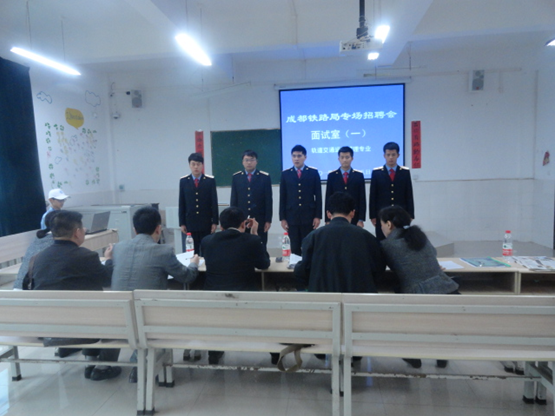 宣讲结束后专场招聘会正式开始,面试者们在志愿者的引导有秩序退出宣讲会场,并以班级为单位按照要求有序到三栋教学楼各个教室等候面试。面试时志愿者分组喊号,5人为一组,排队进入不同的招聘铁路专业面试室,面试的同学们精心准备了自荐书,个人简介,就业推荐表等,希望把自己最优秀的一面展示给各位考官以便得到考官的青睐,获得面试的通过。每位考官仔细询问了面试者们这两年来所收获的成果,以及学习情况,并让每位面试者做了一个简单明了的自我介绍。每个人都以严肃认真的态度对待这次面试,讲述了他们在这两年里所收获的喜悦与汗水。