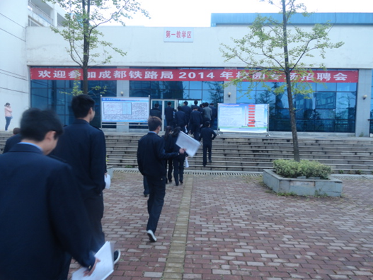 紧张有序的面试让面试者们忘记了时间的流逝,最终对我院有着重要意义的成都铁路局专场招聘会于当日下午17:00圆满落幕。“十年磨一剑”,有付出就会有收获。看着每个人洋溢着笑容的脸庞,衷心地祝福他们能取得成功并在以后的人生道路上越走越远。