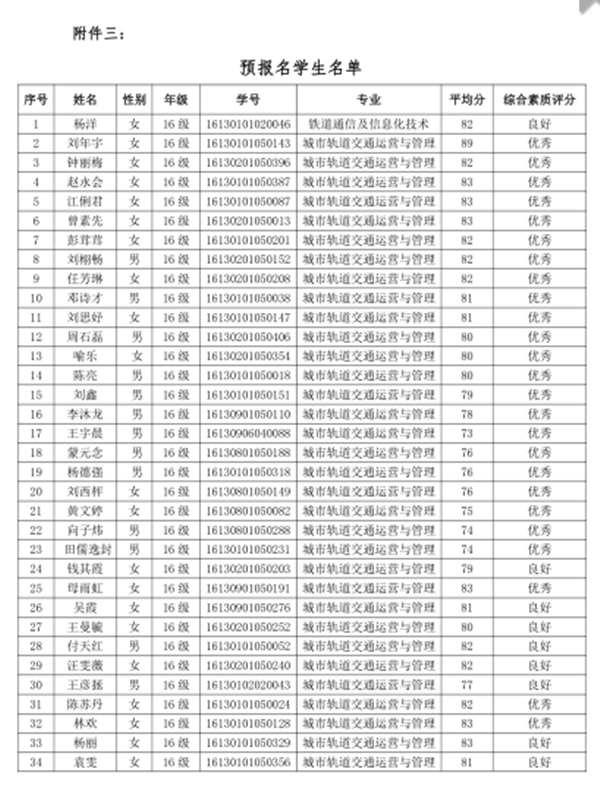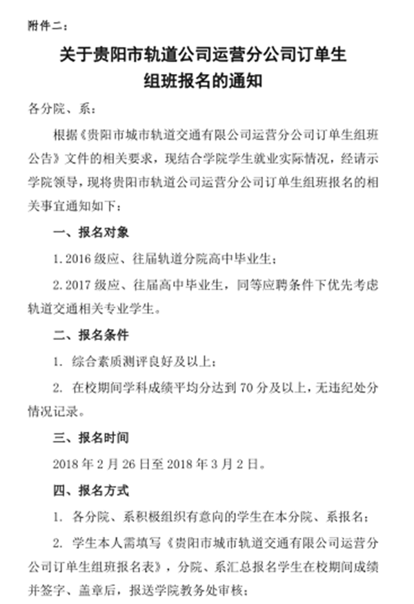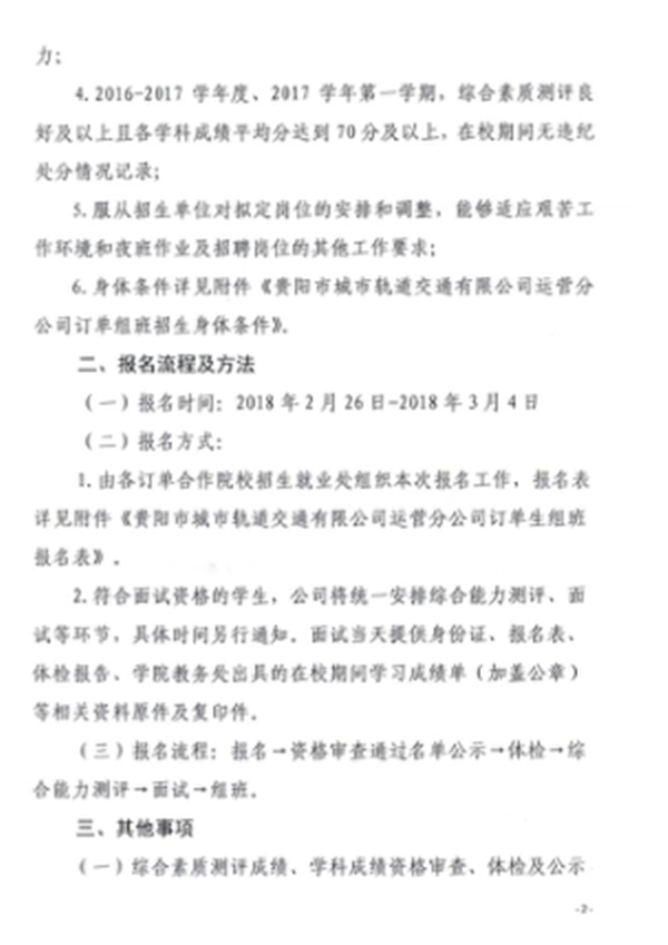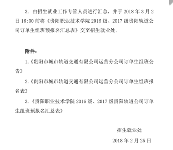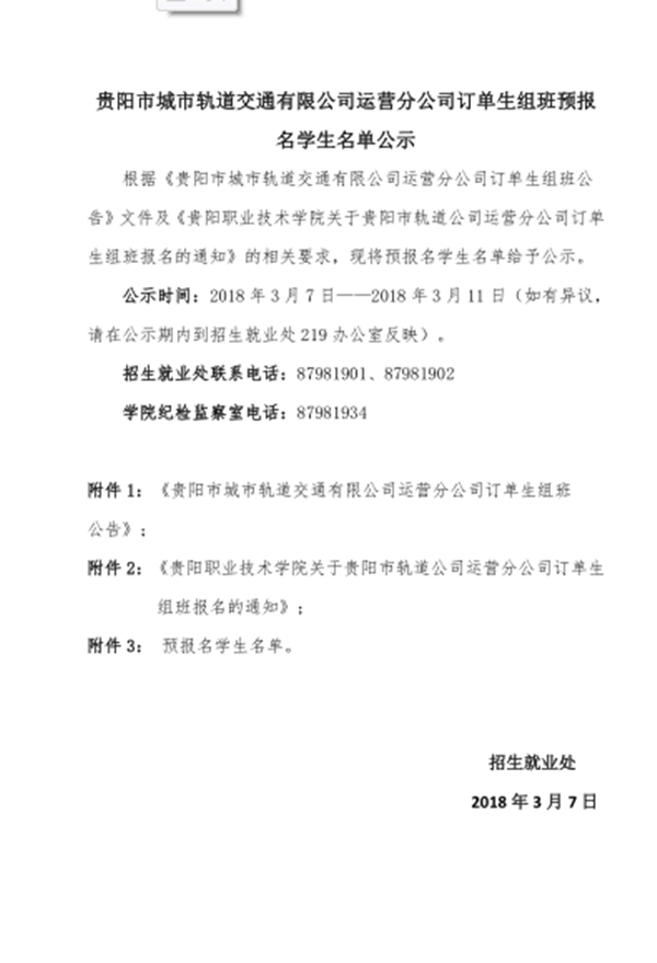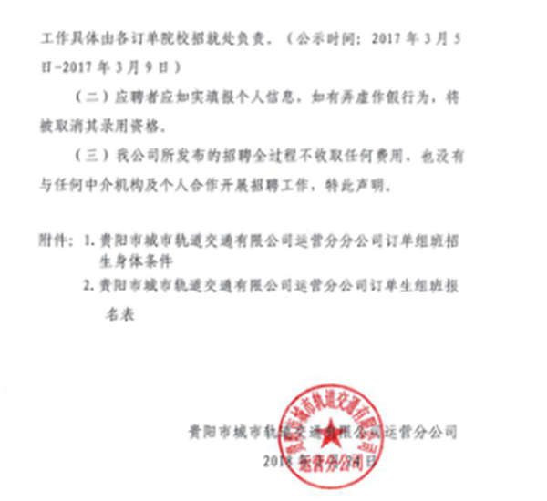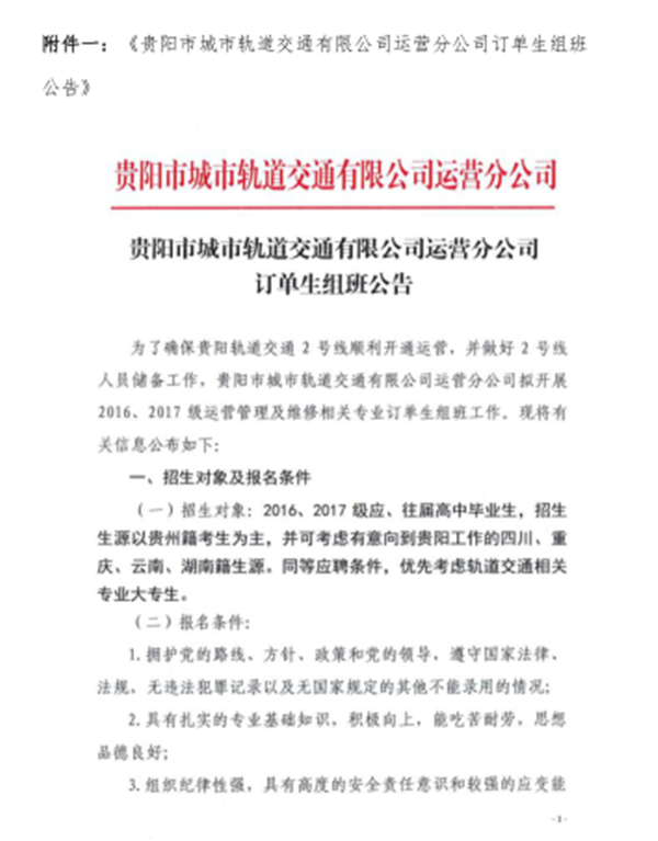 贵阳市城市轨道交通有限公司运营分公司订单生组班预报名学生名单公示