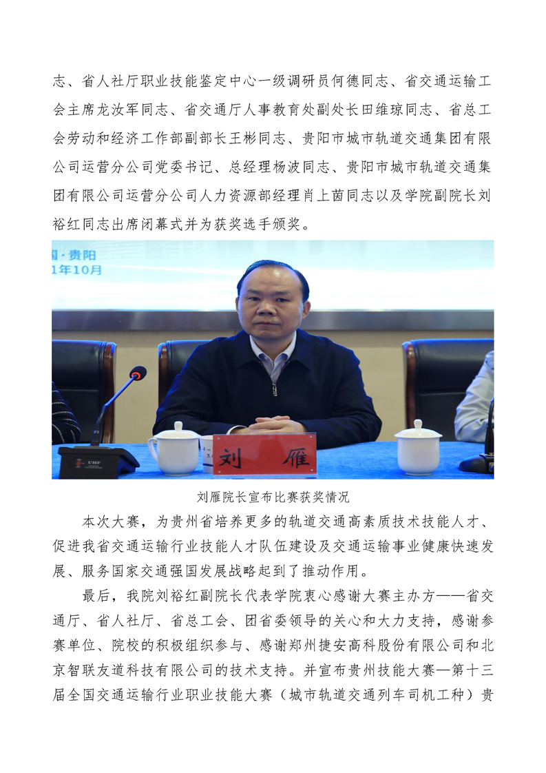 轨道交通分院选手参加第十三届全国交通运输行业城市轨道交通列车司机职业技能竞赛贵州省选拔赛勇于拼搏取得好成绩