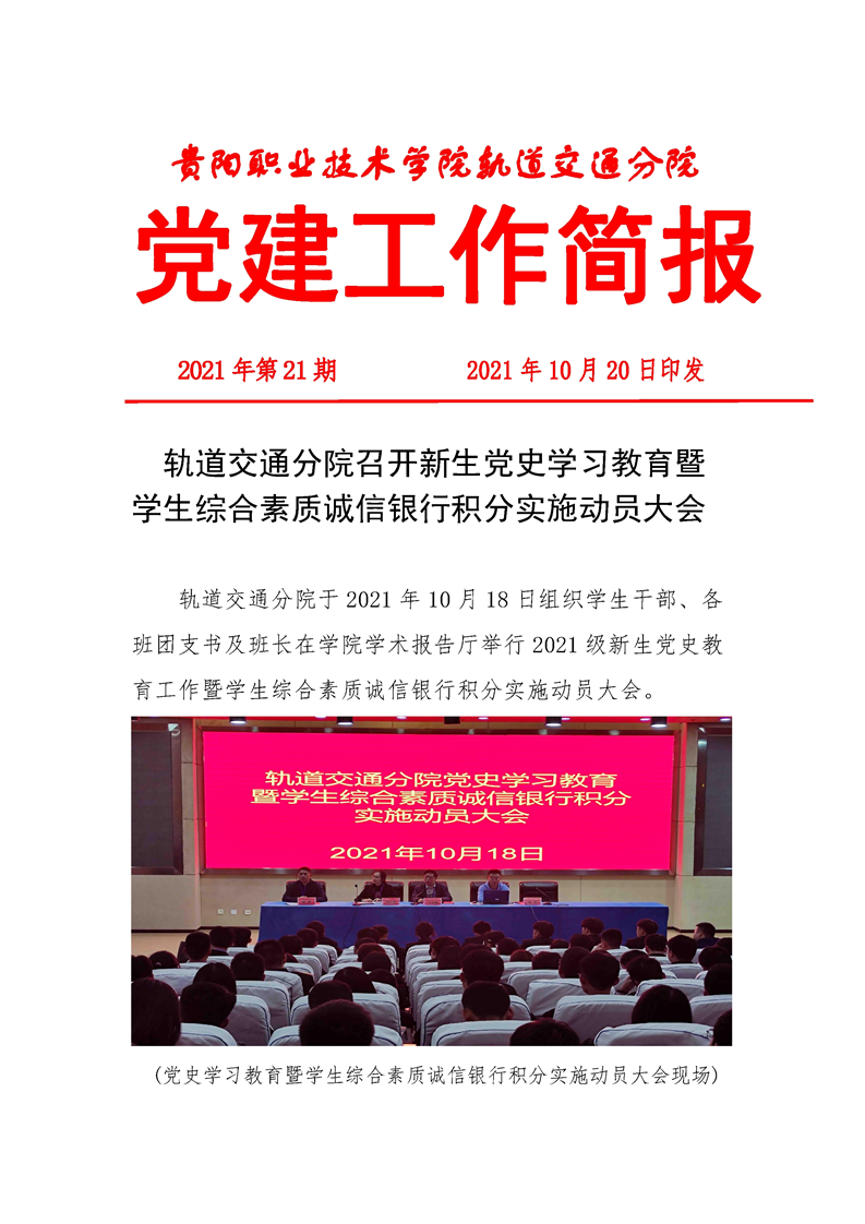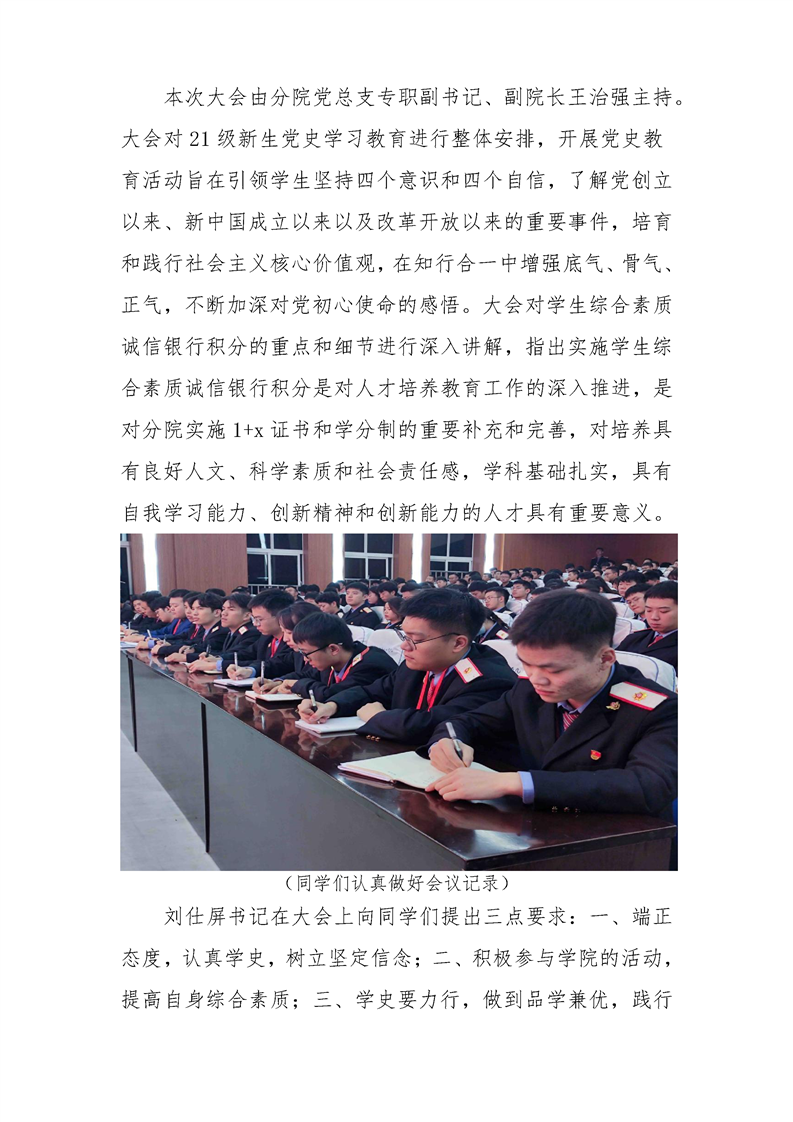 轨道交通分院召开新生党史学习教育暨 学生综合素质诚信银行积分实施动员大会