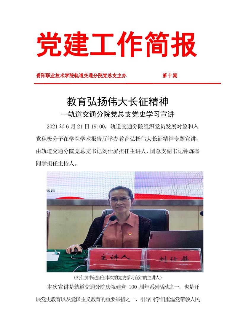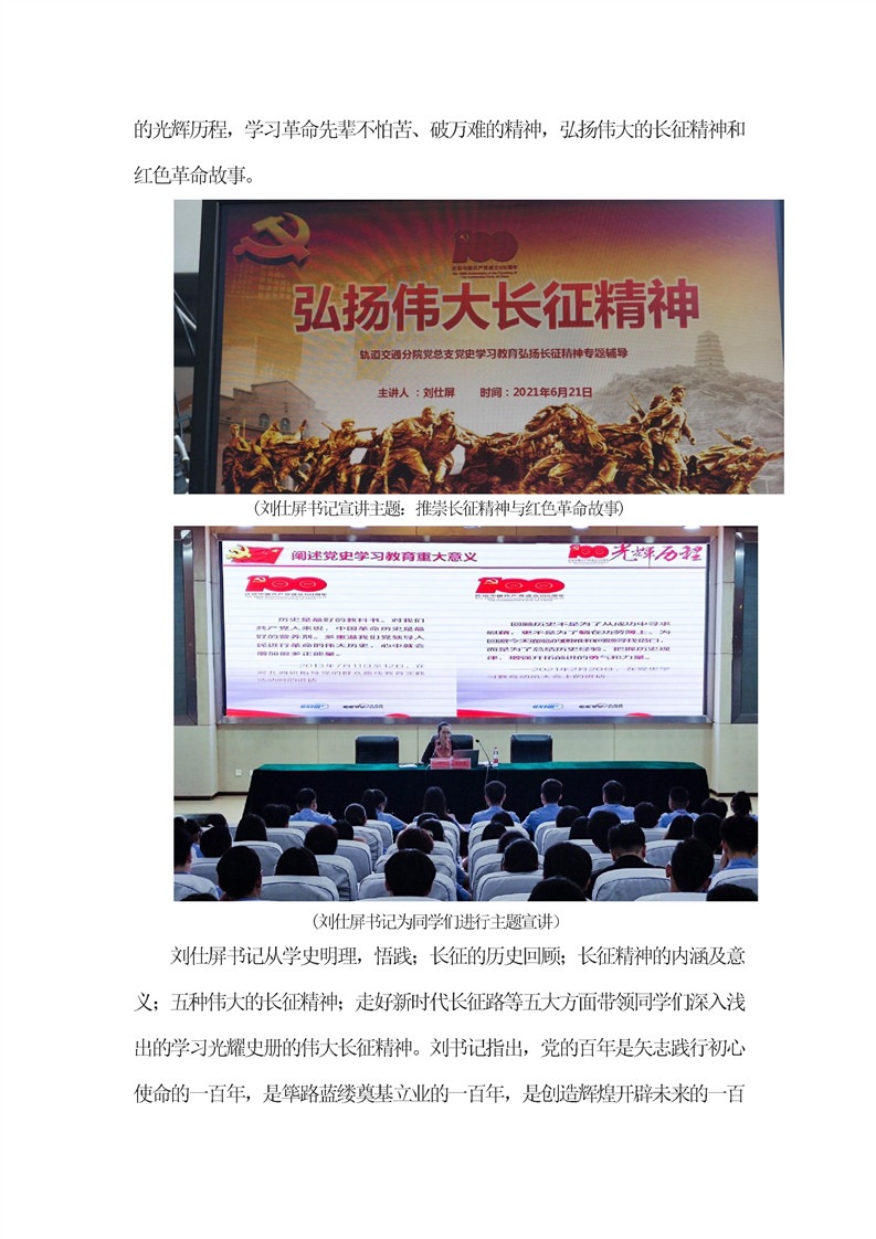 教育弘扬伟大长征精神 --轨道交通分院党总支党史学习宣讲