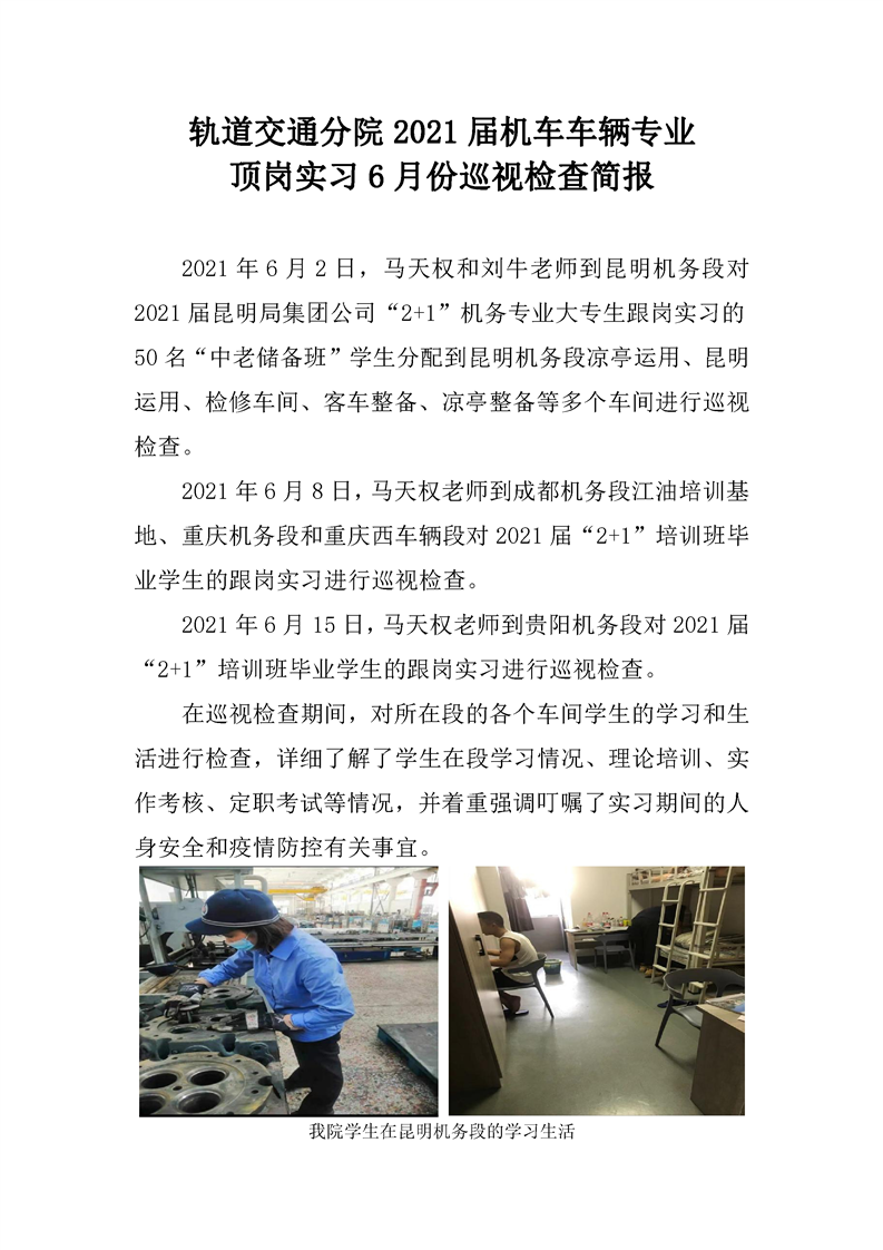轨道交通分院2021届机车车辆专业 顶岗实习6月份巡视检查简报
