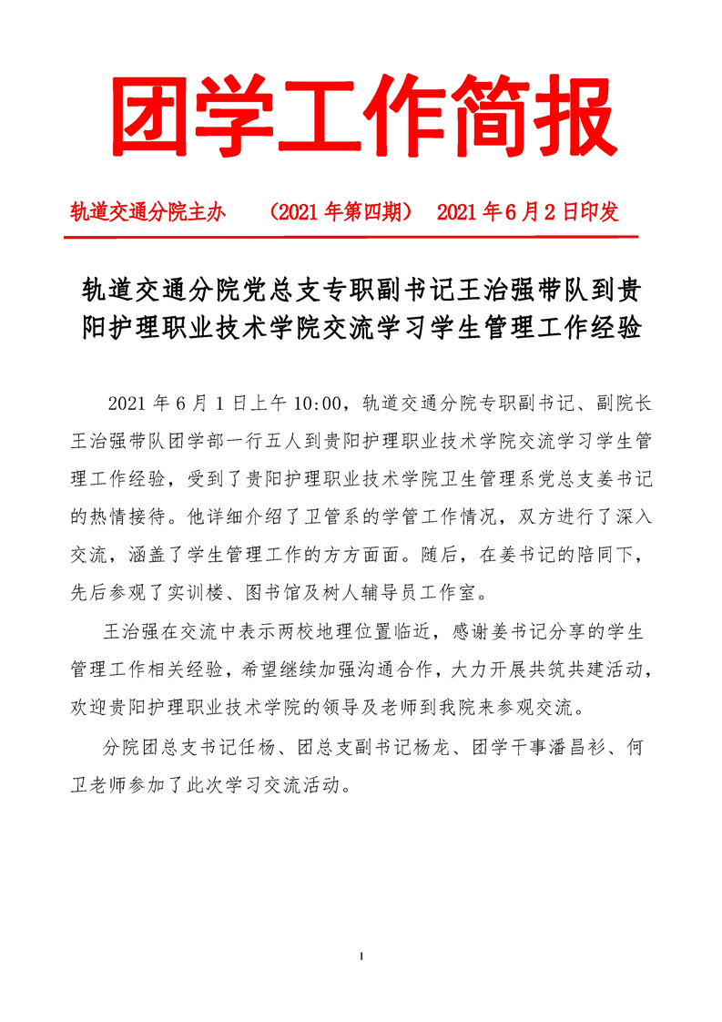 轨道交通分院党总支专职副书记王治强带队到贵阳护理职业技术学院交流学习学生管理工作经验