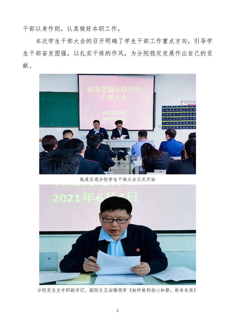 勇于担当 奋发图强—轨道交通分院召开第四次学生干部大会