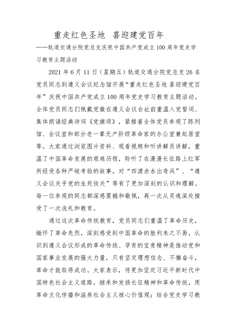 重走红色圣地  喜迎建党百年 ——轨道交通分院党总支庆祝中国共产党成立100周年党史学习教育主题活动