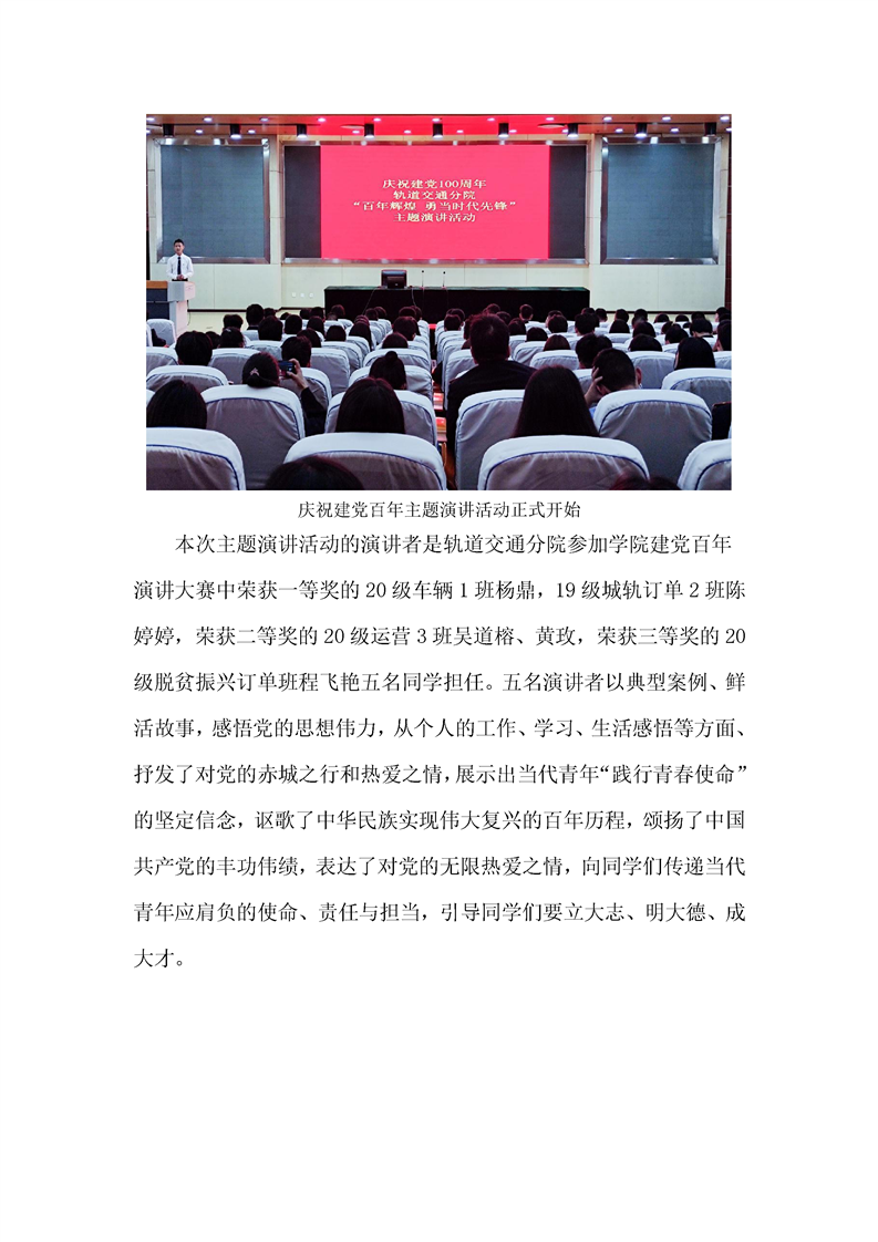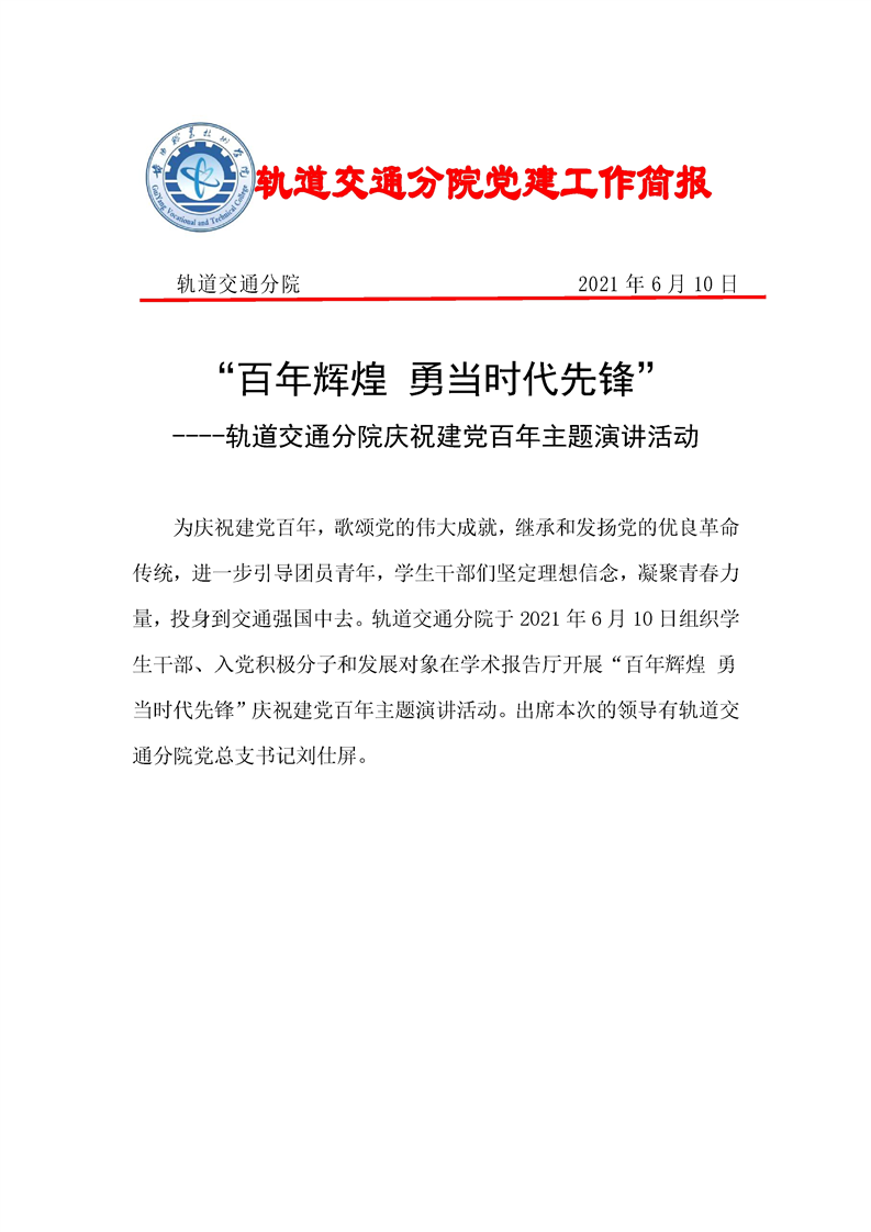 “百年辉煌 勇当时代先锋” ----轨道交通分院庆祝建党百年主题演讲活动